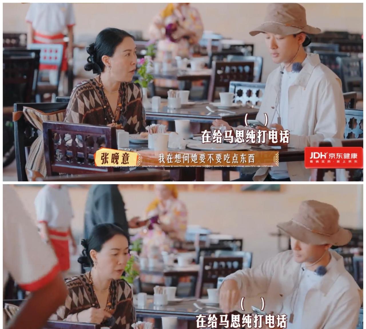 张晚意在门口望眼欲穿, 终于等来了马思纯, 马思纯焦急 冲进去就咔咔两下就搞定了。 其他6个人都去吃早餐了, 只有马思纯还在酒店睡觉。 张晚意就担心马思纯饿着, 准备给她打包。 结果马思纯要过来用餐。 张晚意就一直在门口等马思纯, 马思纯来到, 就一顿操作“猛如虎”。 先是咕咚咕咚灌了一杯橙汁, 然后拿起一根黄瓜就咔嚓咔嚓咬。 一边走一边咬。 她太能照顾别人的感受了。 她知道自己起来晚了, 没有慢悠悠的吃早餐, 而是随便吃点东西, 赶快跟大家出发。 马思纯在节目前就坦言 自己需要充足的睡眠。 大家都知道。 但是马思纯没有仗着自己 生病, 就要大家特别照顾她。 而是保证自己健康的同时, 不耽误其他人的行程。 对呀, 大家都是成年人, 不能以某种借口, 就让别人迁就你。 别人是否迁就你, 是别人的事, 而你是否拿捏做事分寸,