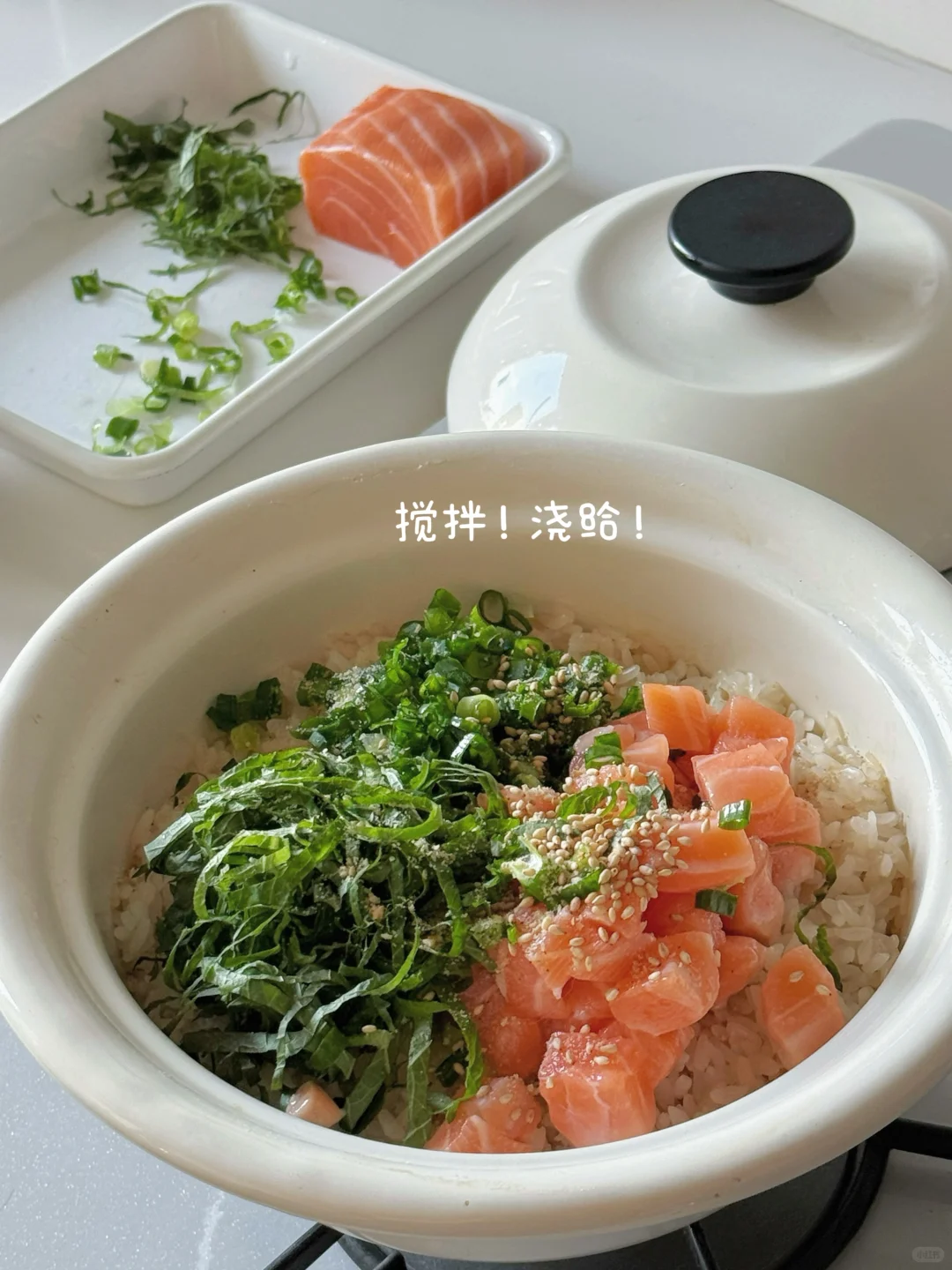 紫苏三文鱼焖饭🍚🍃