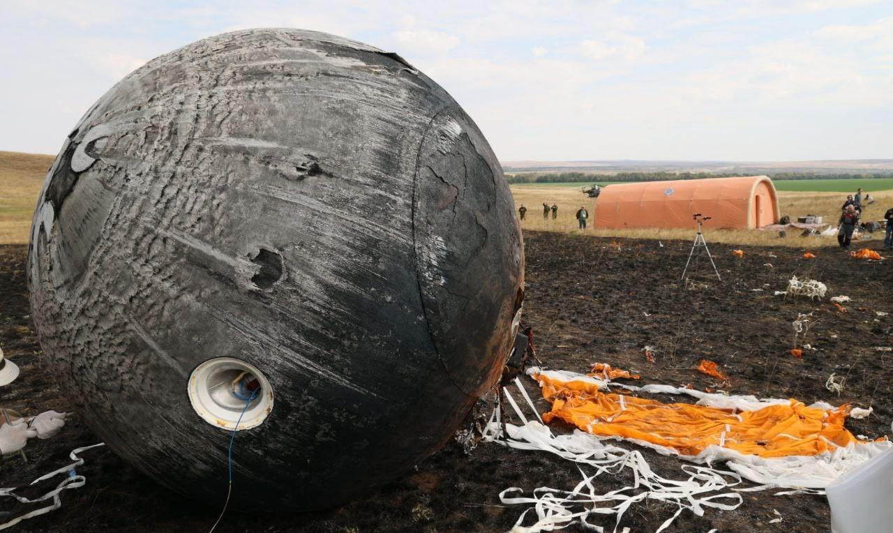 还好,返回舱里没有人…… 大俄的生物卫星返回舱成功着陆,着陆时缓冲发动机点火引发