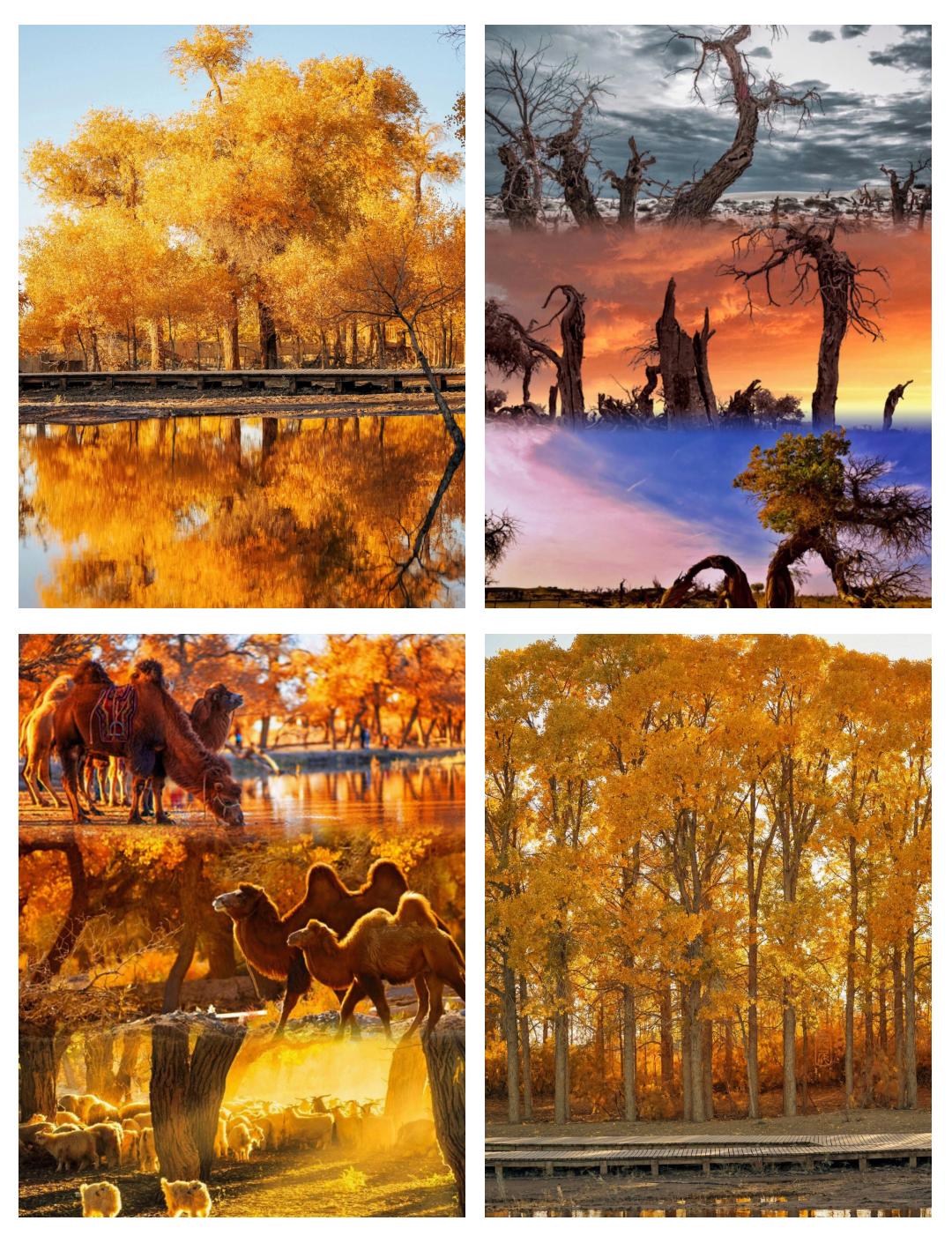 1️⃣.胡杨林,“中国最美秋色”9-10月,胡杨叶子全黄,拍照绝美。
