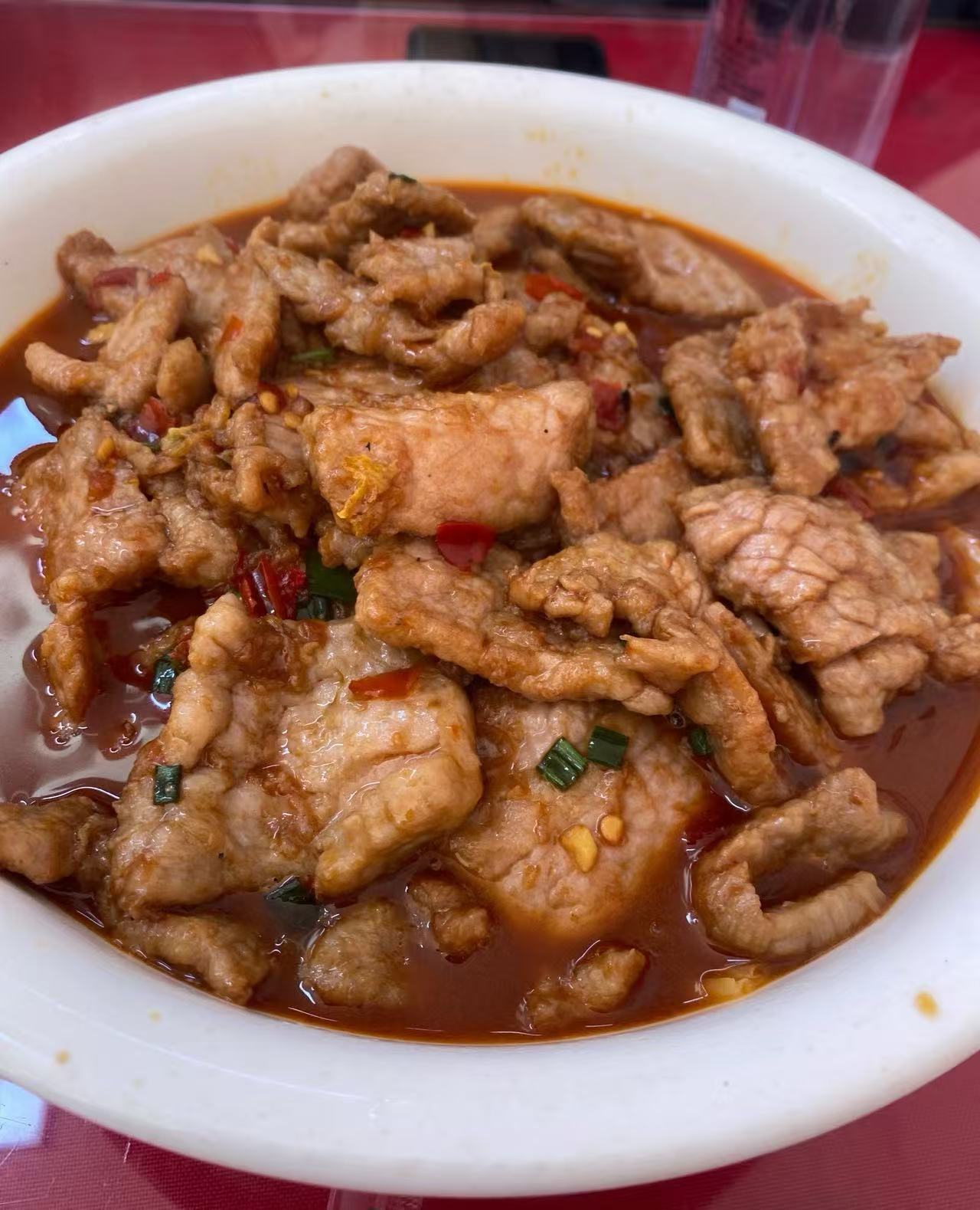 3️⃣.水煮牛肉,牛肉吃起来紧实大块,超级入味,微辣鲜嫩。