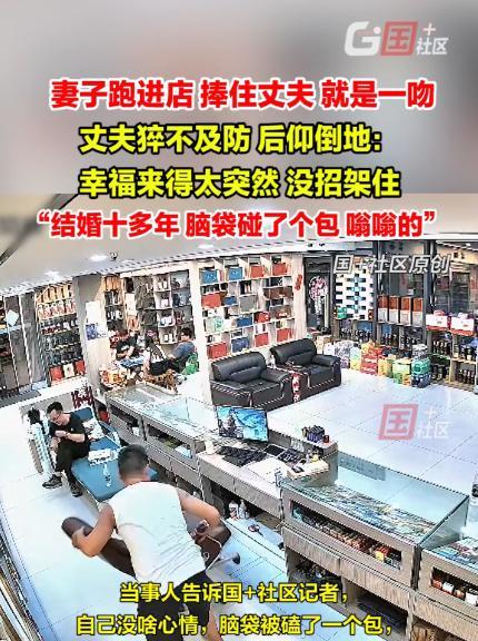 “丢人丢大了!”9月17日,湖北武汉,一女子突然跑进店里,捧住正在玩手机的老公,然后深情一吻,随后快速逃走了!男子被搞懵了,一时没反应过来摔倒在地上,头上还被磕了个大包。网友:幸福来得太突然! 很多人在谈恋爱时,总是会为对方制造惊喜,想尽办法哄对方开心,可结婚后,随着时间的推移,这些浪漫都逐渐消失了,“老夫老妻”在一起,感觉平平淡淡就已经很知足了。 这天晚上,男子正在店里看店,几名朋友在店里闲聊,他则坐在电脑前,翘起腿自顾自的玩着手机。 就在这时,男子的妻子跑了进来,对着他就是深情一吻,然后又跑走了,男子一时没反应过来,摔了个人仰马翻,起身后尴尬地摸了摸头。 店里的朋友纷纷哈哈大笑,围过来“吃瓜”,妻子也回到店里,安慰起丈夫来。 据男子表示,两人已经结婚十多年了,没想到妻子会突然亲自己一口,也是被整懵了。 网友看后表示,谁懂中年男人突然被妻子吻一口啊,直接就被吓得两腿发抖,要么是要买东西了,要么就是另有所图,晚上都吓得不敢睡觉。 很多夫妻都在漫长的生活中被熬没了激情,过节的时候偶尔送个礼物,就已经很满足了。 信息来源:《9月17日,湖北武汉。妻子跑进店,捧住丈夫就是一吻,幸福来得太突然,没招架住,丈夫后仰倒地:没啥心情,脑袋被磕了一个包,嗡嗡的。》国+社区