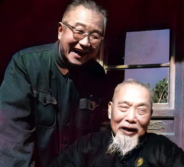 这是1960年启功与陈垣在一起欣赏书法。陈垣是启功的老师。在陈垣面前,启功一直以