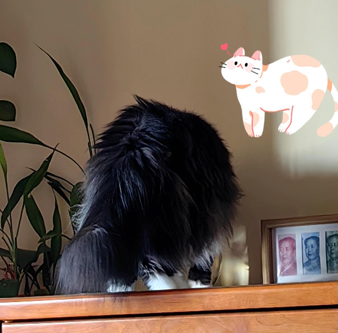 真是奇迹呀,我家猫猫突然明白过来了,知道主动去喝水了。这两天早晨,我都是在它“嗞嗞”地喝水声音中醒来的。 一睁开眼睛就看见大黑正站在五斗柜上,喝小鱼缸里的水呢。一边喝一边甩动它的大尾巴,很舒坦的样子。 一开始,我以为是做梦呢!大黑已经整整一个月不知道自己去喝水了。每天早晚,都是我把小水碗端到它面前,用手指头沾点水抹它鼻头上,它才知道喝水。 大黑是只10岁多的老猫了,我们全家人一致认为它是老了,有点痴呆了。我还寻思呢,就得天天把水抹它鼻头上,把水碗端到它嘴边去喂它了。否则,它就得渴死了。 没想到一个月后的今天,它又知道去主动喝水了。又和从前一样了,猫粮碗的水,鱼缸的水,洗脸盆里的水,它想喝哪个就喝哪个,想啥时候喝就啥时候喝了。真是件令人开心的事,老公说:给大黑买点好猫粮吃,别苛待它。 这还用他说,大黑的猫粮比人吃的肉贵多了。不然,它怎么能健康地活这十多年。大黑吃的少,以前二白活着的时候,巨能吃,一天吃无数遍,胖到14斤。猫粮的档次下降了一点。 自从二白得病死后,这一年多,大黑的猫粮又恢复到了从前的水准。 大黑是挪威森林猫,小种猫种,特点是毛长,寿命长。平均寿命18岁,如果不出现什么意外,它还能陪伴我们七八年。 我们是相知相惜!
