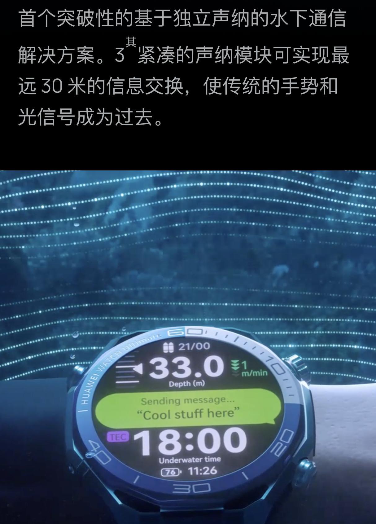 华为WATCHUltimate系列终于也更新了,首发基于独立声纳的水下通信