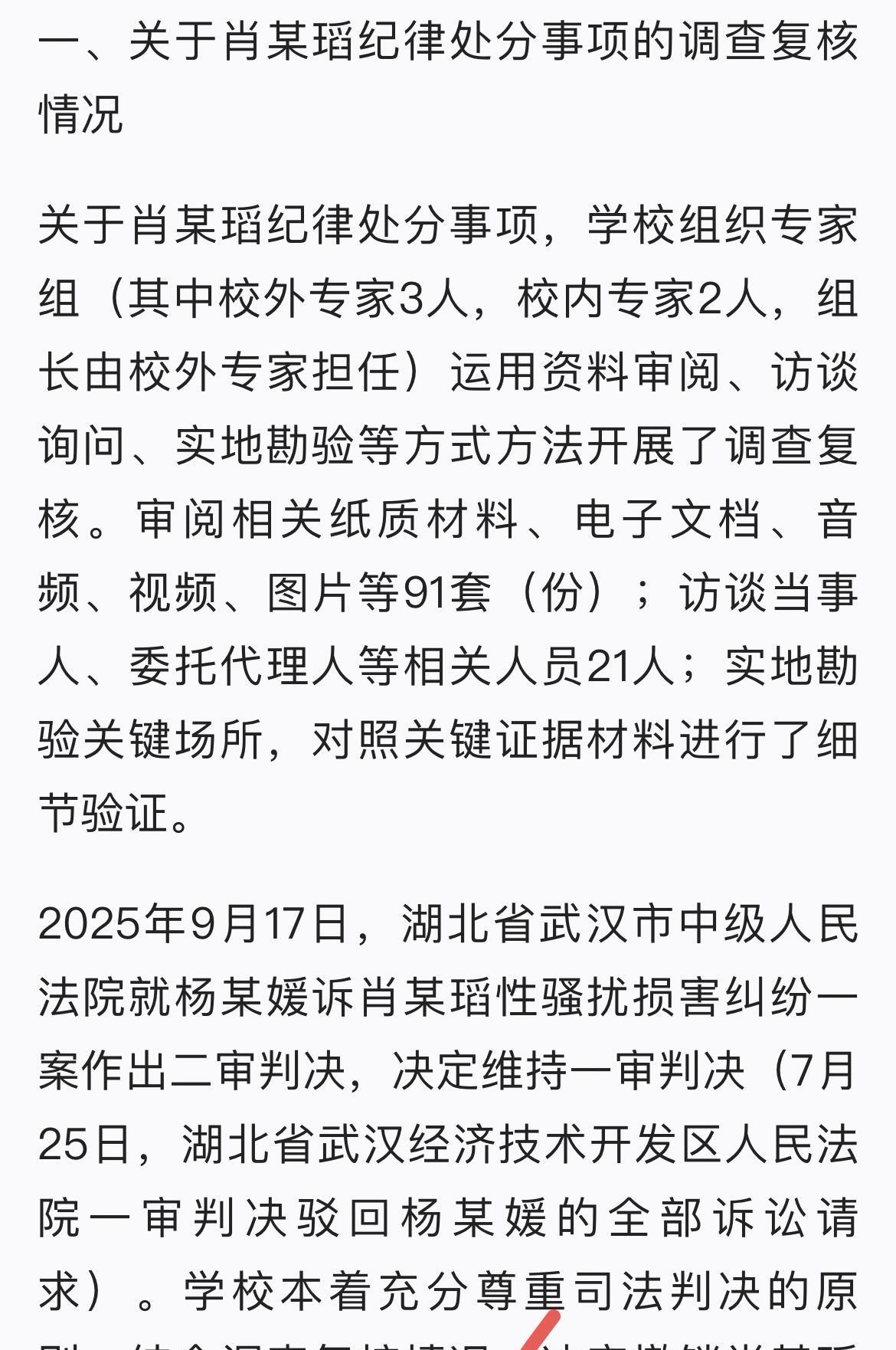 驳回杨某媛被上诉,维持原判! 随后,武汉大学发布通报:撤销肖某瑫记过处分。杨某媛