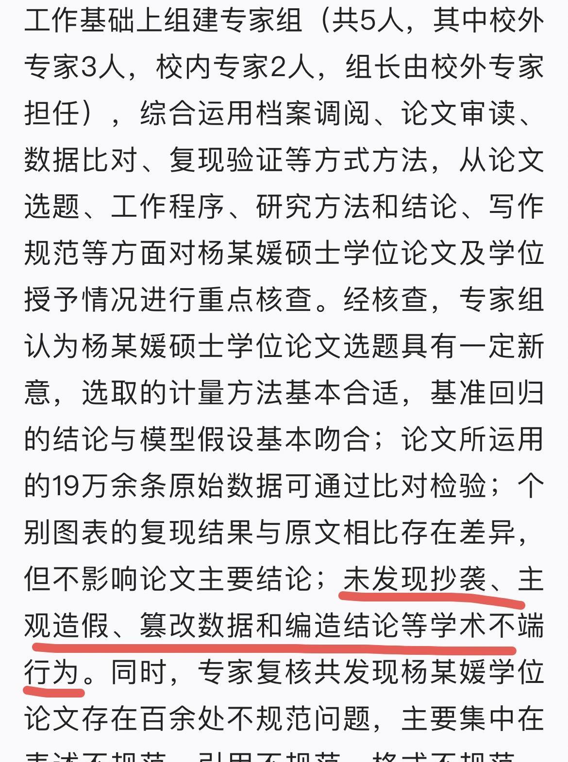 驳回杨某媛被上诉,维持原判! 随后,武汉大学发布通报:撤销肖某瑫记过处分。杨某媛学位论文未发现抄袭、主观造假、篡改数据和编造结论等学术不端行为,仅存在表述不规范、引用不规范等情况。 尽管杨不存在学术不端行为,但其暴露肖同学隐私、嘲讽受害者、发布威胁性言论等行为,着实让人不齿。 犯了众怒,就算能完成学业,毕业后国内用人单位估计也不敢用。