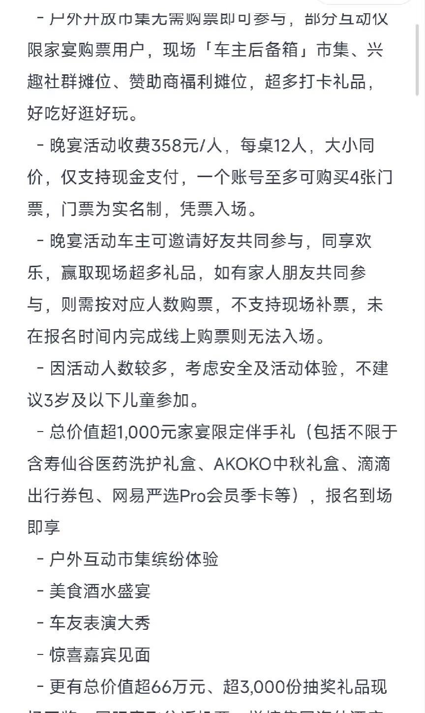 有网友看到参加蔚来家宴,每人还要缴纳358元,是不是脑子有病。 对于参加的车友来
