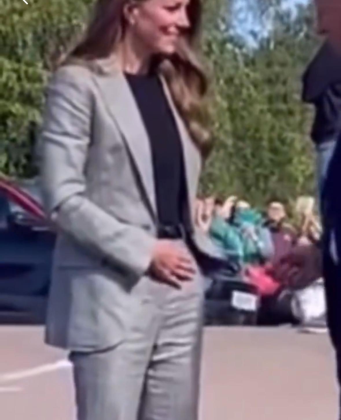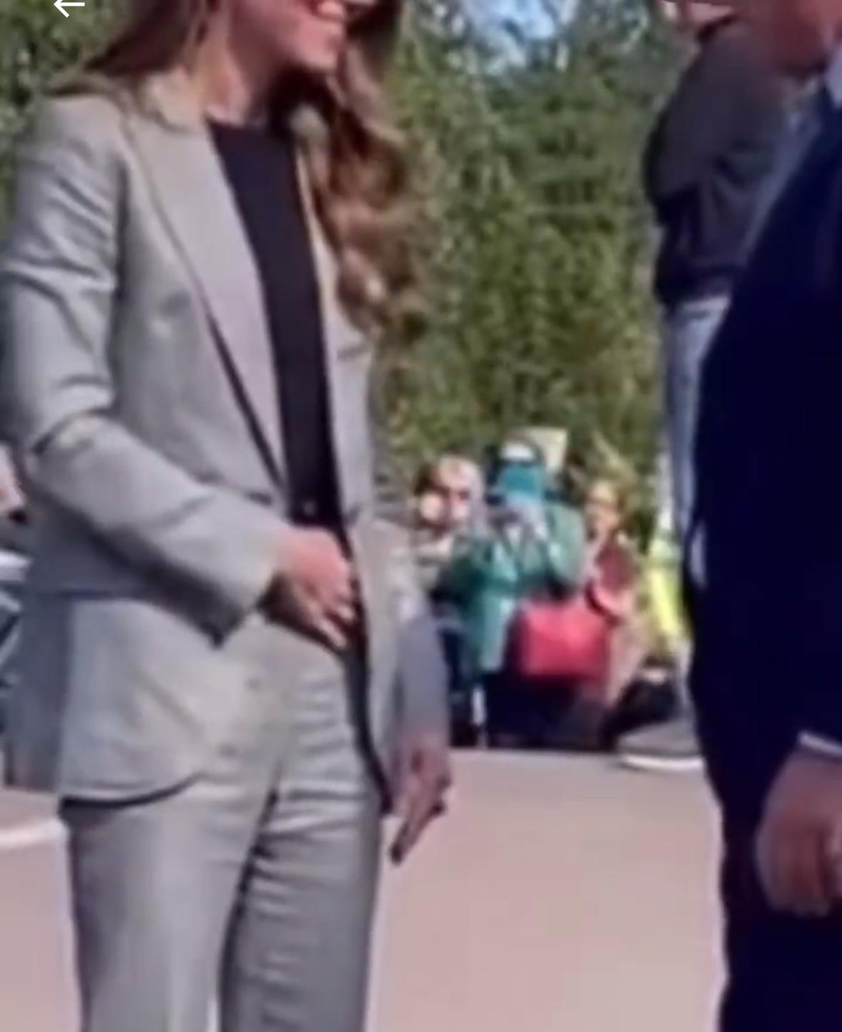 我注意到这一点,凯特总是捂着左侧的腹部,还不时把手伸入口袋拉扯一下。这些小动作很