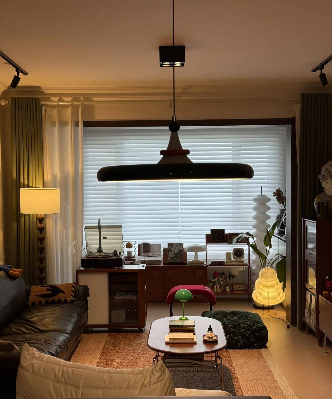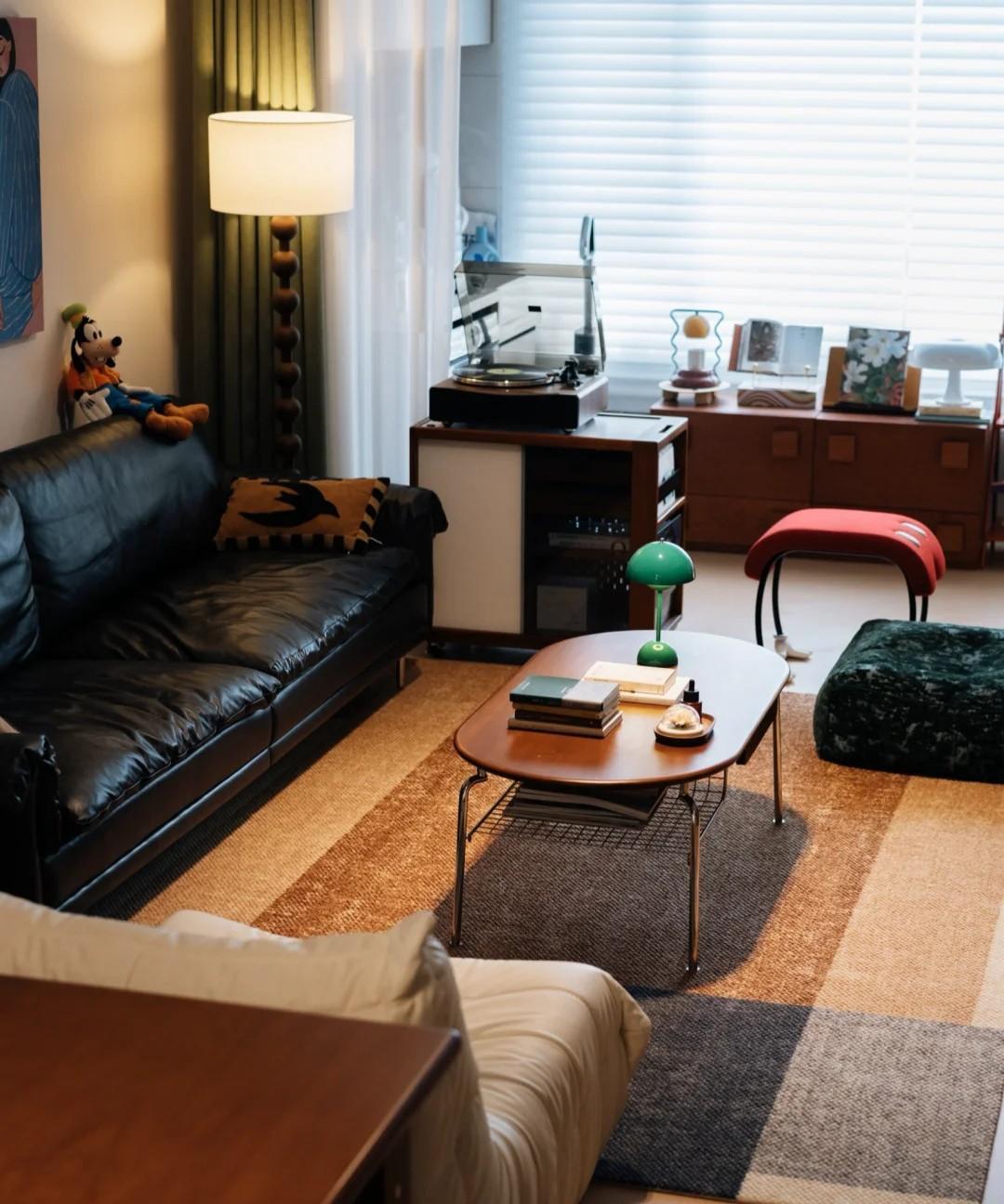 自从住进这个家,就再也没有羡慕过别人了。 房子面积仅87㎡,真没必要过度装修,只要用心布置,照样美出新境界。 全屋地面铺设人字拼木地板,墙面不做任何造型,天花拉平刷白色漆。 但是软装却颇讲究,比如客厅,以大地色为主调,利用黑色皮革沙发让空间显得沉稳,不同的原木色储物柜互相呼应,再加上局部绿色和红色的点缀,在暖光灯的烘托下,显得温馨又有质感,营造出一个电影感的中古风家居氛围。 亲朋好友来访,都纷纷表示审美和品位极高,再买房也要这样装。 这是腾与玫的家,你喜欢吗? #秋日生活打卡季#