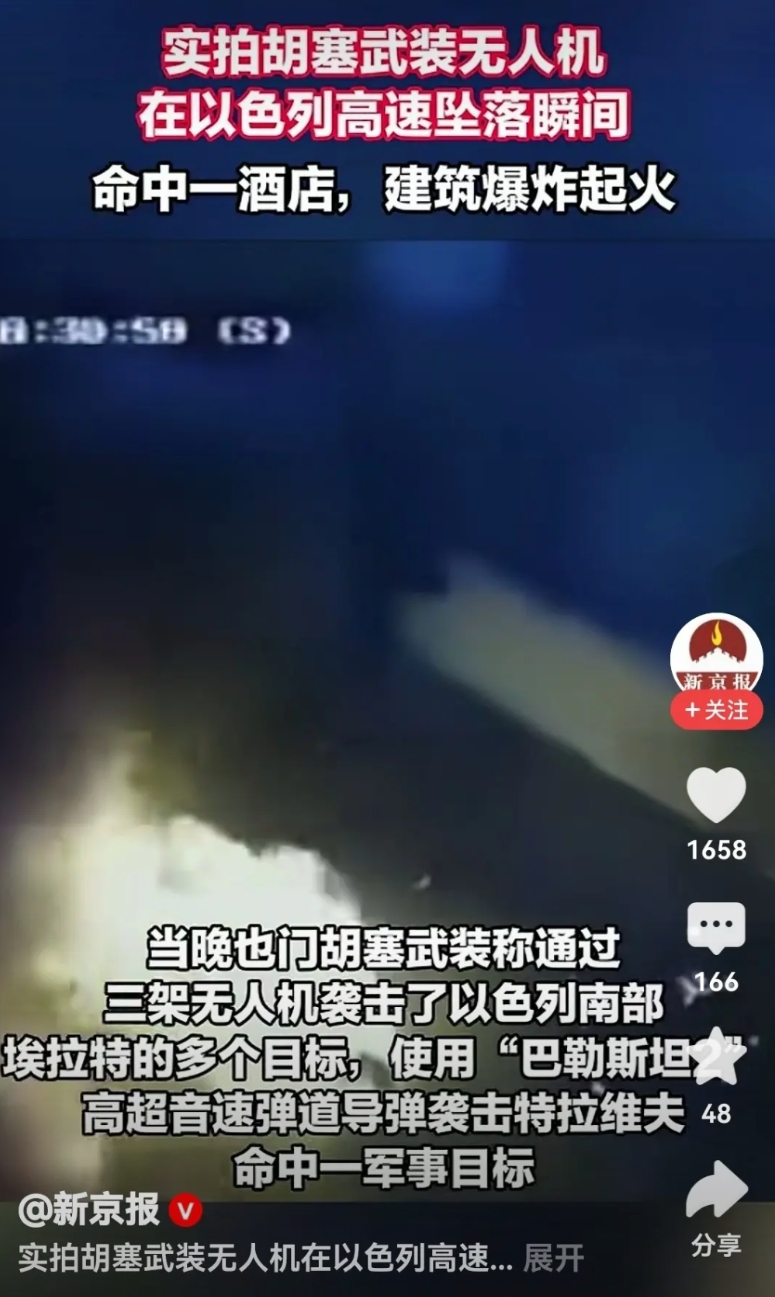 胡塞武装还是猛啊!就在18号当天美国一票否决了中东阿拉伯国家的和平提案之后。 胡塞武装再一次对以色列发动无人机袭击! 以色列的防空系统还是拦不住! 当天一共三架无人机袭击了以色列南部城市埃拉特。 同时还有一枚巴勒斯坦二导弹袭击了特拉维夫! 有埃拉特的当地居民,清楚地记录了无人机袭击的瞬间。 高速飞行的无人机根本没有遇到任何的拦截,直接撞到了一家酒店。 瞬间引发剧烈的爆炸。 拦不住啊,还是拦不住。按理说巴勒斯坦二导弹你拦不住也就罢了,因为那是高超音速导弹。 怎么连无人机都拦不住了呢? 以色列现在拉成这个样了吗? 事实证明,胡塞武装现在就是什叶派里面的战斗最强一级。 而巴基斯坦就是逊尼派里面的战力最强一级。 只要他们俩还能撑住,中东阿拉伯世界就还能熬得住!