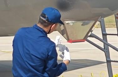 照片上,地勤战士正在给歼-20进行日常保养,两名战士分别擦试DSI进气道“蚌壳”