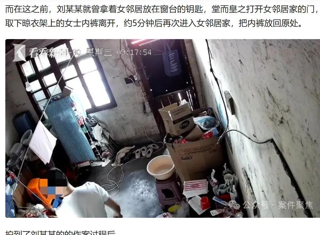 上海,男子和前妻离了婚,他觉得是女邻居大嘴巴导致的,于是他看准女邻居把钥匙放在窗台,就拿钥匙打开女邻居家,偷了一条女士内裤,5分钟之后放回去,后来,他脱光衣服又到女邻居家,往热水壶里小便,直到女邻居看到这令人难以入目的一幕。 据光明网,9月20日报道,刘某接到一个电话,关于孩子上户口的,他得知自己的孩子,和另一名男子做亲子鉴定,他才知道自己的孩子可能不是他亲生的,他非常气愤。 他和前妻已经离婚了,前妻把孩子带走了,离婚这几年,他一直不怎么联系得上前妻和孩子,现在孩子有可能不是他亲生的,想到这里他就非常愤怒。 特别是他看到女邻居那一副嘴脸,更是恨邻居了,事情要回到几年前,由于女邻居多嘴,刘某和妻子分居。 他们的孩子就是在他和妻子分居的时候出生的,他觉得他和妻子的分居都是女邻居造成的,所以妻子才有可能生了不属于他的孩子。 刘某觉得这一切都是女邻居的错,他一直想找机会,给女邻居一点教训。 终于他找到机会了,他意外发现,女邻居把备用钥匙是放到窗台的。 他家和女邻居家那么近,只要拿到窗台的钥匙,进入女邻居家,想干啥就干啥。 他先是拿到备用钥匙,趁着女邻居不在家,就进了女邻居家偷了一条女士内裤,拿回家之后,也不知道他拿这条内裤到底干嘛了,反正过了5分钟左右,他就把这条内裤放回了原处。 他做的这件事神不知鬼不觉,女邻居一直没有发现。 后来刘某发现女邻居根本不知道他所做的一切,于是他的胆子大了。 他无所畏惧,在家里不穿衣服的他,就那样光着身子,又拿着备用钥匙进了女邻居家,这一次他真正地要给女邻居一点教训了。 他看中了一个热水瓶,他有一个可怕的想法,想让女邻居喝他的小便。 于是他就往热水壶里小便,事后女邻居发现,热水壶里倒出的水是淡黄色的,她还以为是水有问题就没有喝。 可是接二连三出现这种事情,女邻居就觉得不对劲,因为那味道闻起来像尿。 这到底是谁往热水壶里小便呢,女邻居怀疑有人进入他们家,为了查一下到底是谁干这种缺德的事,与邻居安装了监控。 很快时隔一个月,女邻居终于在监控中看到了让人匪夷所思的一幕。 只见刘某当时脱光了衣服,然后拿着窗台的钥匙进入了她家,刘某若无其事地往热水壶里小便。 一切真相大白了,她终于知道是刘某干了这种缺德的事,她感到匪夷所思,她不知道刘某为什么要干这样的事。 后来她才知道是刘某恨她,还怪她拆散了他们的婚姻。 女邻居觉得很奇怪,刘某和前妻分居离婚的事情,怎么能够怪她,这是他们俩之间的事情,就算她多嘴说了那么一两句话,也不至于让他们夫妻俩分居,更不至于让他们离婚。 刘某自己和前妻离了婚,没有从自己身上找问题,倒是赖上她了,她觉得这很莫名其妙,她更加觉得像刘某这样的人,前妻不跑才怪呢? 那么如何认定刘某的行为呢? 1、 刘某擅自进入女邻居家做出让人难以接受的事情,他的行为已经构成了非法侵入住宅罪。 《刑法》第245条规定:非法搜查罪、非法侵入住宅罪是指,非法搜查他人身体、住宅,或者非法侵入他人住宅的,处三年以下有期徒刑或者拘役。 即使是邻居,即使知道邻居的钥匙在哪里,也不可以轻易进入邻居家。 2、 刘某往女邻居的热水壶小便,这是有违公序良俗的行为。 《民法典》第8条规定:民事主体从事民事活动,不得违反法律,不得违背公序良俗。 作为一个成年人,不可做一些有违公序良俗的行为,侵害他人。 3、 女邻居若是因为这些事情受到精神损害,她可要求赔偿。 《民法典》第1183条规定:侵害自然人人身权益造成严重精神损害的,被侵权人有权请求精神损害赔偿。 因故意或者重大过失侵害自然人具有人身意义的特定物造成严重精神损害的,被侵权人有权请求精神损害赔偿。 刘某和前妻的问题应该是他们俩之间的事情,不可以怪罪于别人。 那么你对刘某的行为有何看法呢?素材来自光明网
