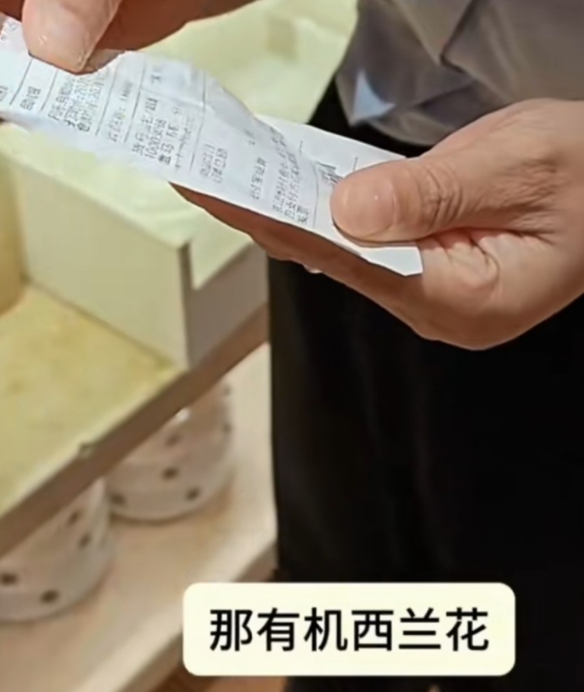 一顾客想要看看西贝的冰冻西兰花,这次员工从后台拿出了一个新鲜西兰花,还自信地把小票拿出来展示,这是我们刚买的。
