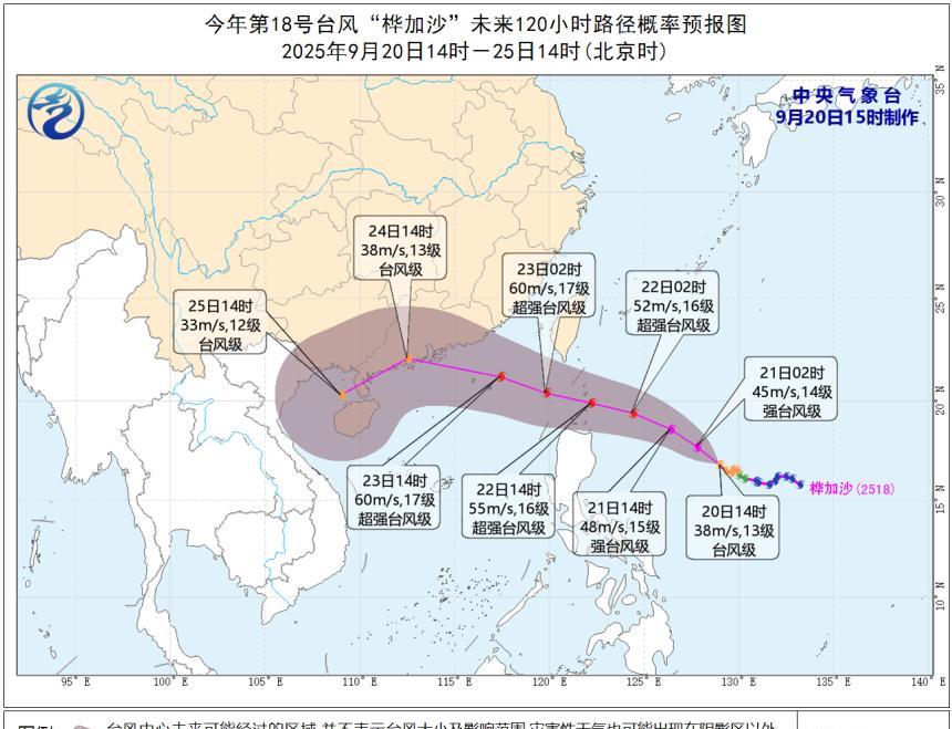 台风“桦加沙”增强至13级,24日登陆广东的概率较大!今天(20日)下午14时4