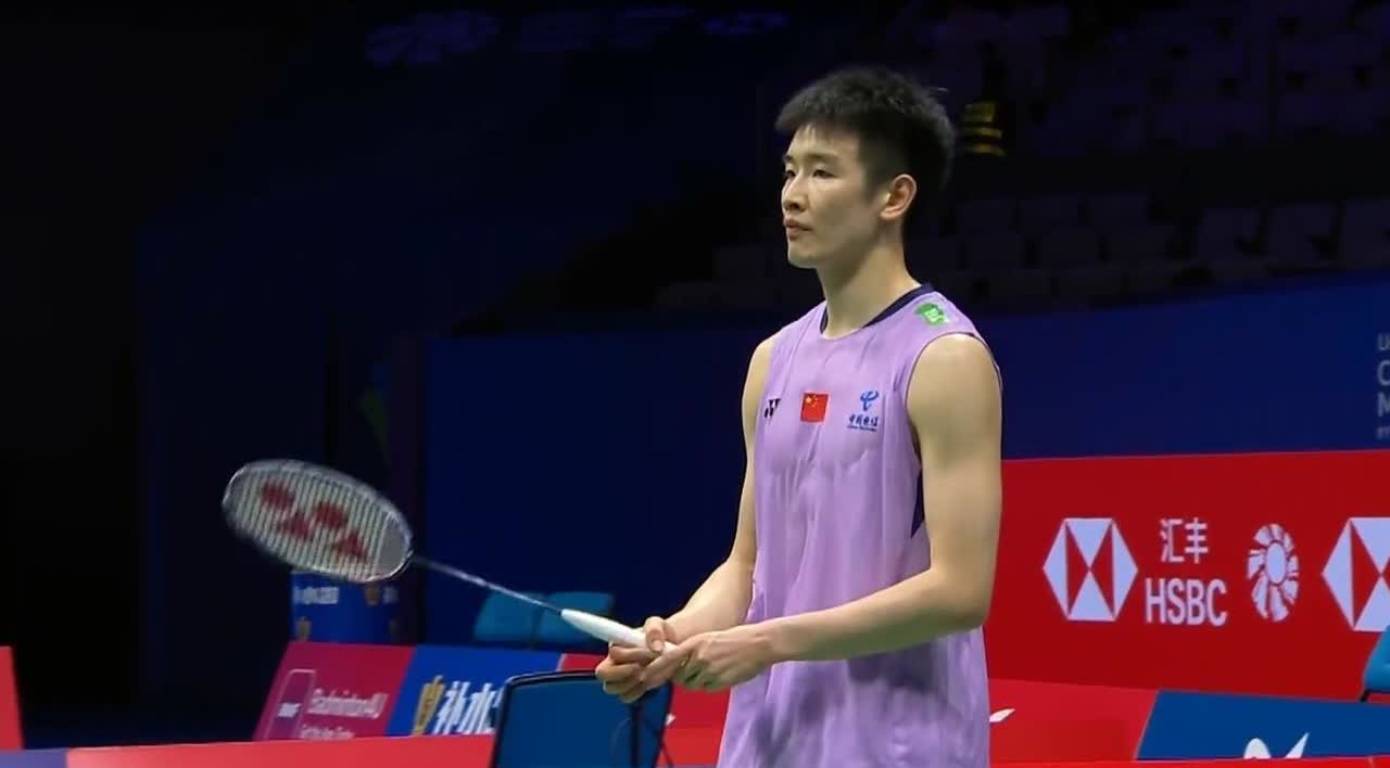 2025年中国羽毛球大师赛,男单1/4赛李诗沣16-21,15-21不敌林俊易止