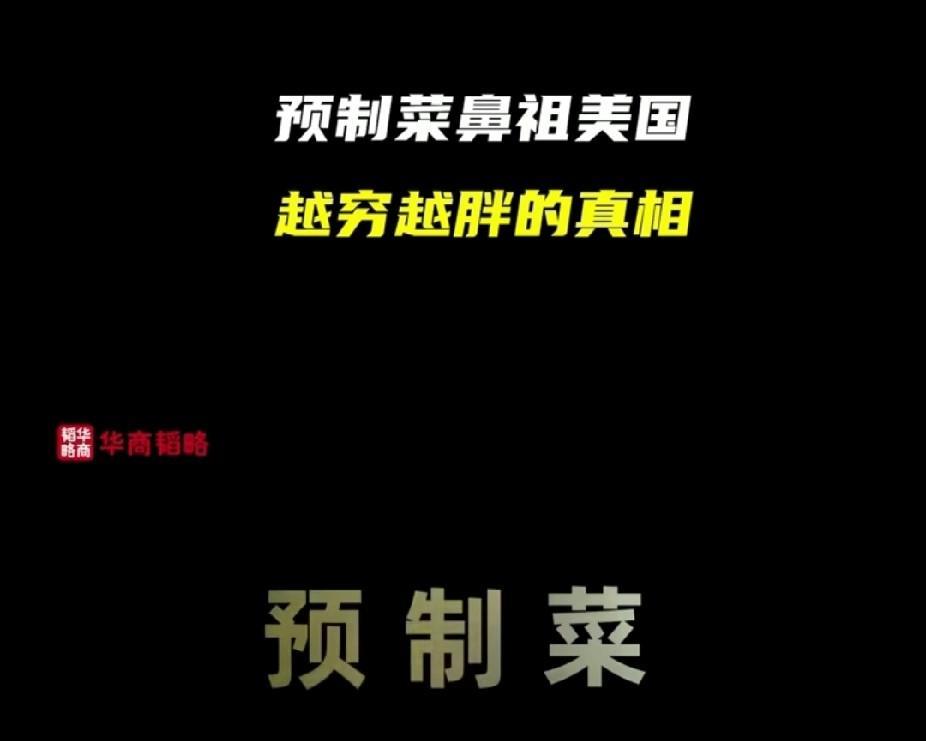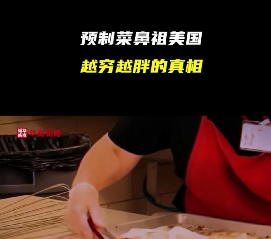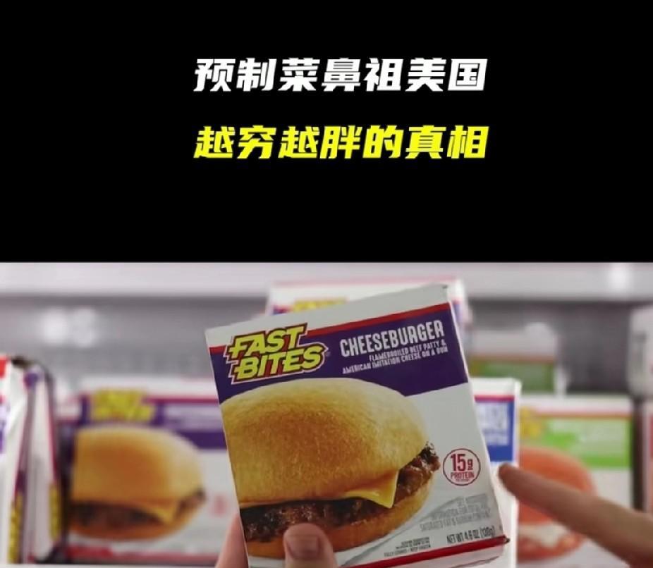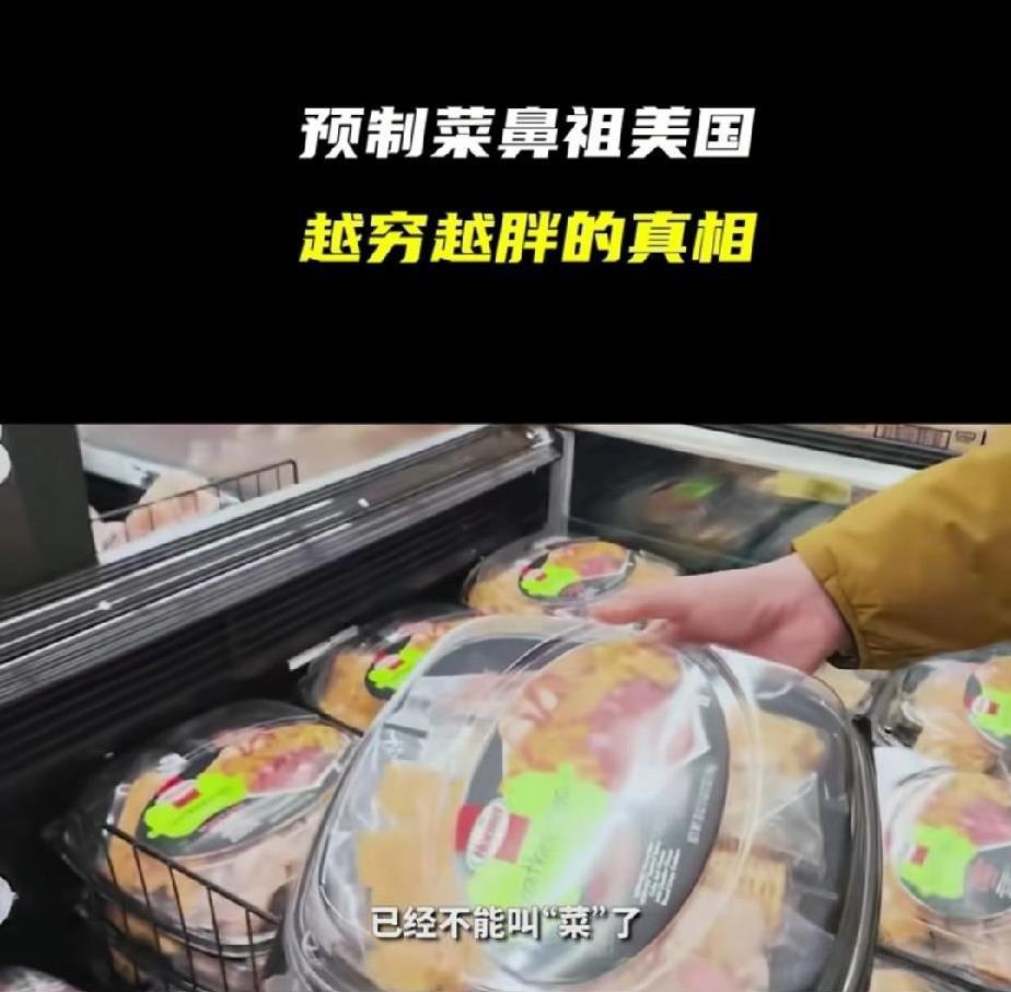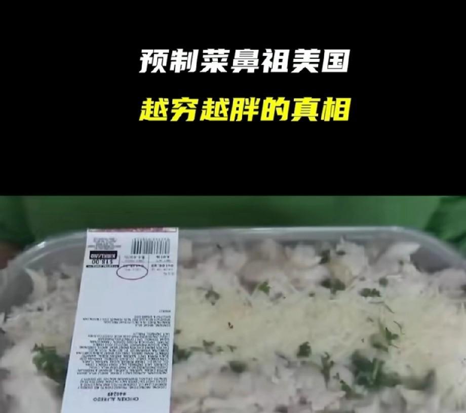 零天然,纯添加!文明的美国人吃的已经不能叫预制菜了,更像是饲料。在美国万物皆可预制,连鸡蛋都能预制。 你以为美国学生吃的会好一点? 对不起,60%的预制菜流进了美国校园,这也是为什么美国很多学生会把学校里的饭直接倒掉的原因。 之前在网上看到过几个美国家庭主妇给家里做饭的视频,除了面包之外,他们把各种预制肉,以及各种瓶瓶罐罐袋袋装的东西往锅里怼。 一顿饭能怼七八种。 说实话,那种东西我作为一个吃惯了现炒菜的中国人,看着都害怕…… 然而,那些美国家庭主妇做好混合饭之后,自己尝一口,竟然说,oh!nice! 我直接目瞪口呆。 天天吃这种东西,难怪美国会成为肥胖率第一的国家。 但是,美国精英们可不那么吃。 如果说美国最底层的人消费的是一两美元的汉堡香肠之类的,那么一份蔬菜沙拉的价格是七到十美元…… 美国精英们聪明着呢,预制的东西,他们可能一个月都吃不了一次……