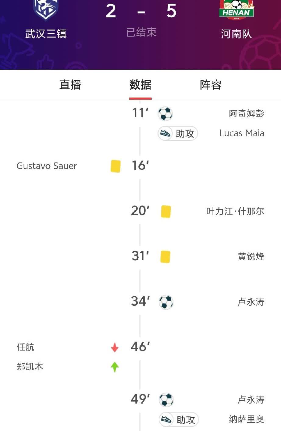 邓卓翔的武汉三镇施出浑身解手,也没有避免主场被拉莫斯的河南酒祖杜康屠城,2:5的比分太刺目了,再看河南进的5个球,从第11分钟到第57分钟区间,而武汉打进两粒挽回颜面的球則在第69分和90分。武汉三镇上轮被天津津门4:0羞辱,两场丢9个球,邓卓翔需要好好认真总结一下,拉莫斯的河南酒祖杜康,近四轮3胜1平,抢得10分,打进12球,除以半替补客场1:1逼平青岛海牛外,其余2:0北京國安,4:0大连英博,都显示了河南的攻击力有多猛。这其间还在足协杯淘汰了上海申花和成都蓉城。"惹不起的河南"回来了!此役获胜河南已积29分了,理论上已保级成功。26轮对阵天津津门,看拉莫斯如何从于根伟的津门虎口拨牙了?