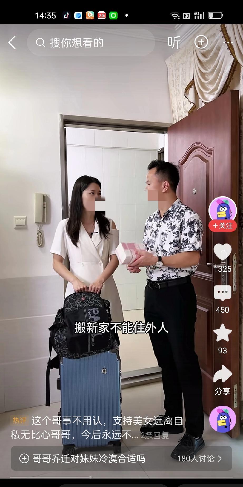 妹妹从外地过来恭祝哥哥乔迁之喜。哥哥看妹妹什么都没拿,有点不悦,就问,你怎么空手来的?妹妹从包里拿出10万交给哥哥。哥哥终于有点笑容了。妹妹说我想在你家里住上半个月。哥哥却说,我们这里有个习俗,搬新家不能住外人。哥哥从口袋里掏出200块钱,让妹妹去外面住酒店。妹妹有点生气了,说我大老远来你家,你也不请我去喝杯茶,就让我走,看来这钱你也别要了,咱们一别两宽,再也不见。说完妹妹把10万块拿了回去,转身就走。哥哥急了,钱你留下啊。