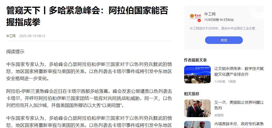 以色列揍加沙、炸伊朗、惹也门,阿拉伯国家全憋着!可一碰卡塔尔,立马集体炸锅——凭啥?谁都清楚,以色列动谁都不该动卡塔尔啊! 这几十年中东有个不成文的规矩:有钱的国家不咋练自家军队,反倒年年给美国送大钱、买军火,求美国当靠山,说白了就是 “花钱买平安”。 就说沙特,2023 年光买美国的战斗机、导弹就花了近 200 亿美元,为啥? 之前胡塞武装炸它的油田,自己根本搞不定,只能靠美国撑腰,哪怕美国有时候只动嘴不动手,也得接着送钱,就怕靠山跑了。 阿联酋也一样,每年给美国交的 “保护费” 没少过,买无人机、防空系统,就是想让美国罩着,别让麻烦找上门。 可卡塔尔不傻,没把鸡蛋全放美国一个篮子里。 一方面,它也给美国好处 —— 美军在卡塔尔有个乌代德基地,是美国中东最大空军基地之一,卡塔尔每年光维护费就好几亿,还常买美国武器,让美国拿它当 “自己人”。 另一方面,它还跟伊朗、土耳其这些美国不待见的国家处得不错,一起卖天然气、调解矛盾,连巴勒斯坦哈马斯,它都能说上话。 更关键的是,卡塔尔是中东的 “和事佬”,谁家有矛盾都得靠它搭桥。 比如也门内战,沙特跟胡塞打了好几年,打不赢也停不了,最后是卡塔尔从中传话,才让两边坐下来谈;黎巴嫩政治派别闹分裂,差点瘫了政府,也是卡塔尔出面,才把各方拉到一起妥协。 那些阿拉伯国家心里门儿清:要是卡塔尔被以色列打了,没人帮它们调解矛盾,以后跟邻居闹别扭、内部出问题,找谁去?总不能天天求美国吧?美国可只认钱,不办实事! 再看以色列之前打的那些地方:加沙离得远,跟自家生意、安全没直接关系,就算心疼也只喊两句口号。 伊朗是什叶派,跟沙特这些逊尼派本来就不对付,以色列打伊朗,它们甚至有点“看热闹”;也门是内战,大家都觉得是人家自己的事,没必要掺和。 可卡塔尔不一样,它跟每个阿拉伯国家的利益都绑死了,沙特要靠它调解也门问题,阿联酋要靠它跟伊朗牵线做天然气生意,约旦、埃及也常找它帮忙解决难民问题,这能随便让以色列动? 而且卡塔尔手里还有个 “大杀器”—— 半岛电视台,这电视台在中东影响力多大?谁家有事想发声、想澄清,都得靠它;就算美国想在中东传消息,也得给它点面子。 要是以色列打卡塔尔,把这电视台搞瘫了,阿拉伯国家连个说话的渠道都没了,只能任由西方媒体瞎报道,说它们的坏话,这口气谁能咽? 还有钱的事儿!卡塔尔是全球第三大天然气出口国,很多阿拉伯国家的天然气都得从它那买,或者靠它的管道转运。 要是以色列炸了卡塔尔的天然气设施,阿拉伯国家的工厂得停工、老百姓家里得断气,生意全黄了,这不是砸大家的钱袋子吗?靠能源吃饭的沙特、阿联酋,能眼睁睁看着好日子没了? 说到底,以色列打卡塔尔,不是得罪一个国家,是得罪所有靠卡塔尔过日子的阿拉伯国家。 就连美国都不答应 —— 美军基地要靠卡塔尔养活,卡塔尔每年买美国军火也不少花钱,真把卡塔尔惹急了,不跟美国合作了,美国在中东的布局都得乱。 所以阿拉伯国家坐不住,不光是 “兄弟情”,更是为了自己的利益:动卡塔尔就是动大家的安全伞和钱袋子,能忍才怪!