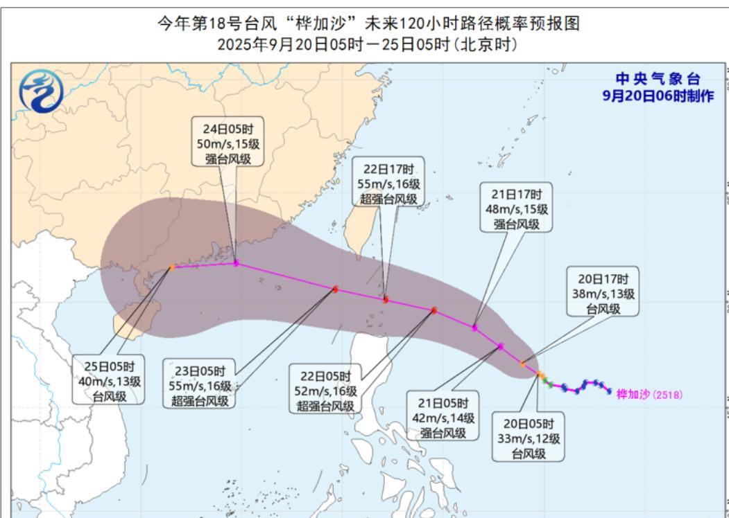 今年第17号台风“米娜”虽然说已经停编了,但是它的高空环流依然存在。从卫星云图上看,今天广东以及湖南一带云量较多。 从雷达回波来看,今天下午你主要是广东清远、广州以及惠州北部一带,广东河源、梅州大部已经没有降雨了。 第17号台风已经结束了,但第18号台风也在路上了。从今天下午的卫星云图上来看,第18号台风中心已经开始有风眼了,下午5点,18号台风“桦加沙”的等级已经达到了13级。 22 号、23 号,台风“桦加沙”很有可能达到16级或 17级,超强台风级别、并逐渐向广东沿海靠近。这一次的台风不仅范围较大 ,而且实力较强。