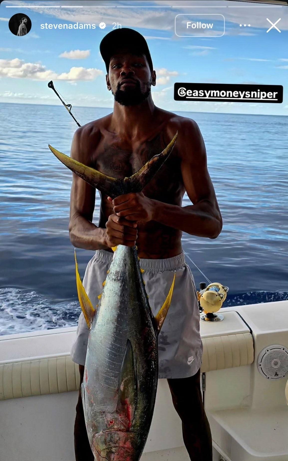 “雷霆兄弟”再聚首,杜兰特和亚当斯一起海钓游玩! 亚当斯在今天社媒上晒出了和杜兰
