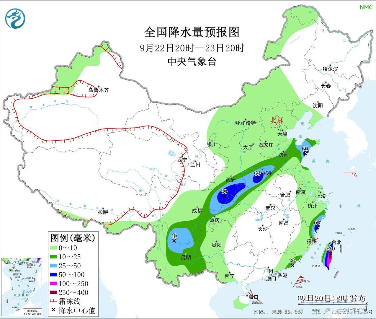 预计,20日夜间至23日,云南中东部、贵州西部、四川中东部、重庆中西部、甘肃南部、陕西中南部、湖北北部以及河南中西部、山西南部、河北南部、山东中东部等地的部分地区有中到大雨,其中,陕西南部、四川盆地东部、云南东北部、河南中部、山东东部等地局地有暴雨。 此外,23-26日,台湾海峡南部、南海北部海域、华南沿海将出现强风雨天气。与此同时,江淮、江南、华南等地还将先后有中到大雨,部分地区有暴雨,华南局地有大暴雨