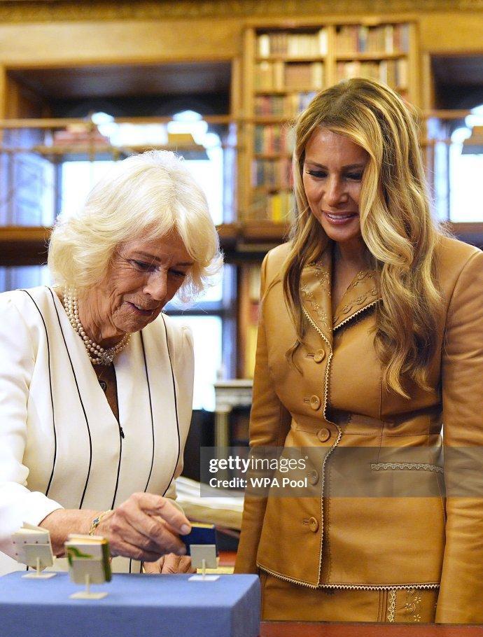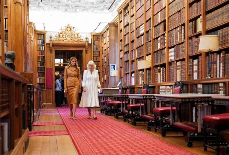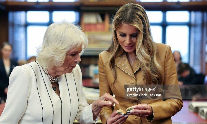 美国访英第二日上午,老卡负责陪同[呲牙] 在温莎城堡的皇家图书馆内, 老卡向美第一夫人展示馆内珍藏。 一身紧身皮裙的梅拉妮娅笑容僵硬, 两人仅在共同欣赏微型书籍时有点互动[笑哭]