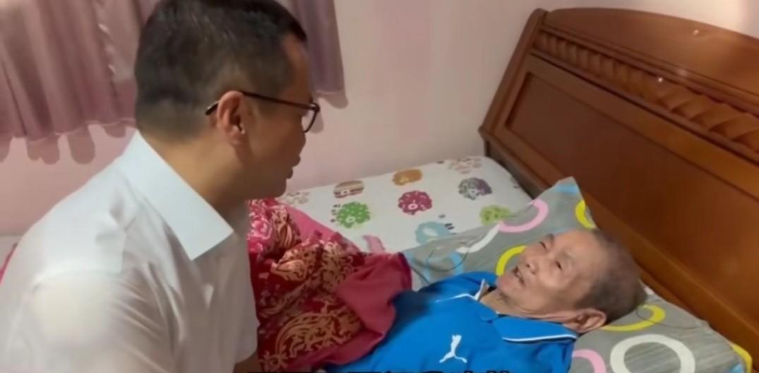 中国国民党党主席参选人罗智强近日回到家中把自己要参选的消息告诉了躺在床上有些失智