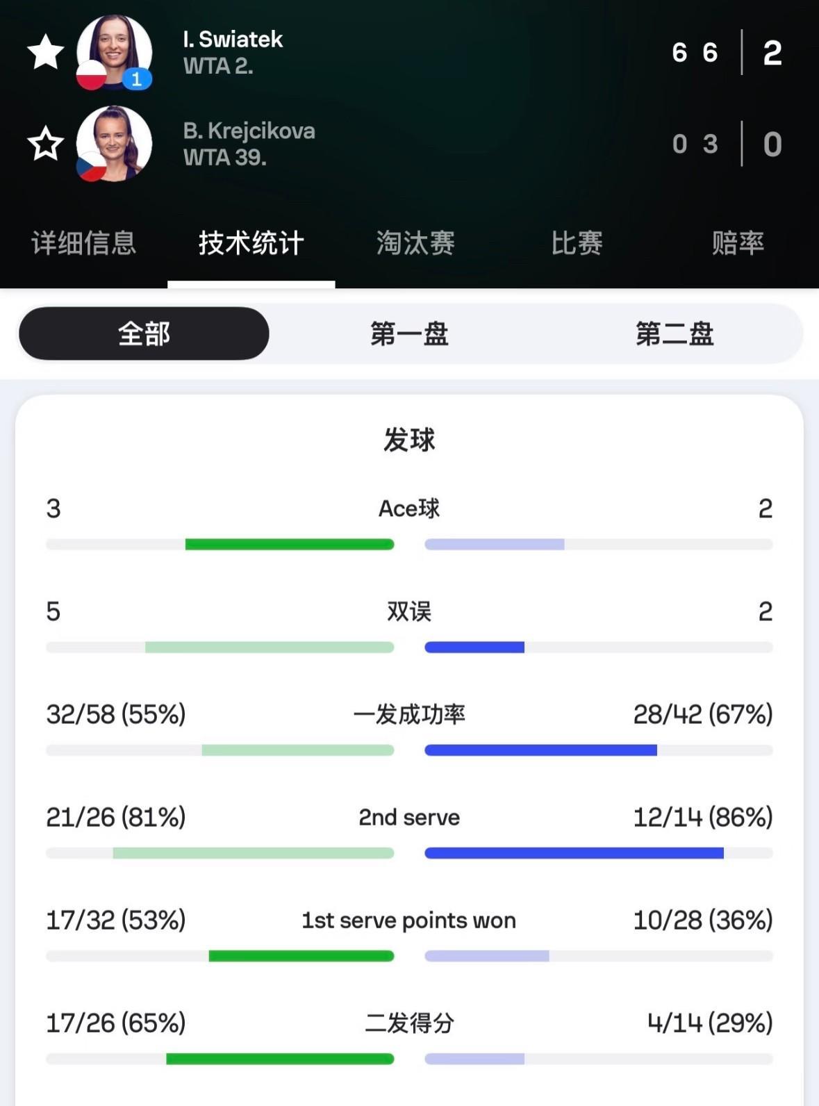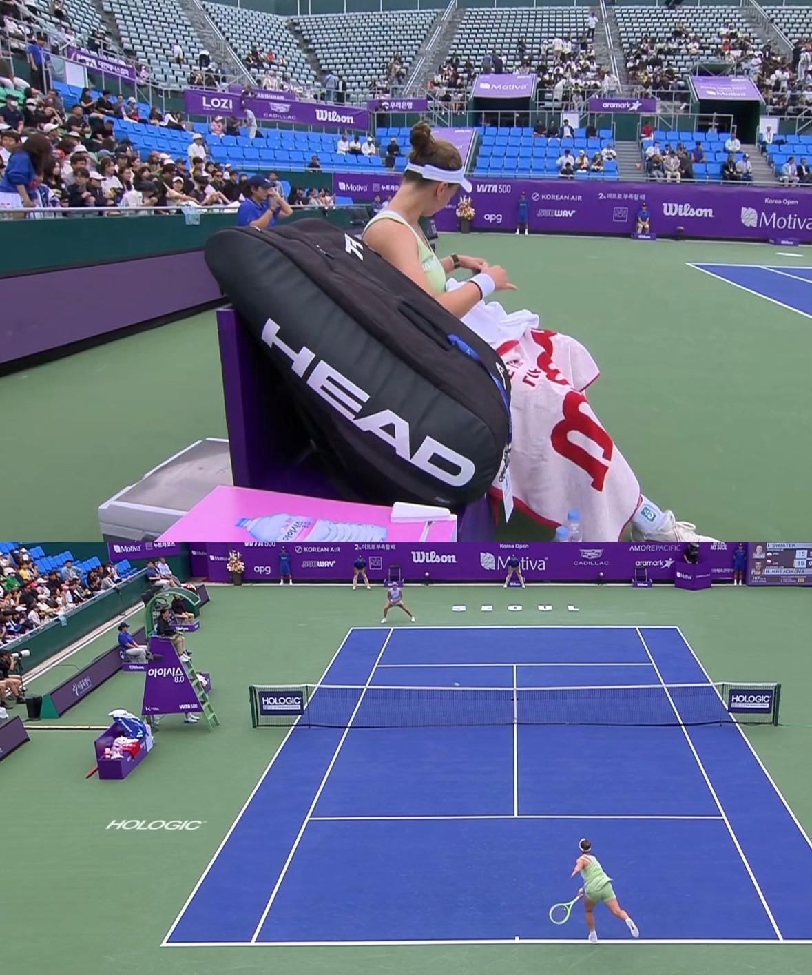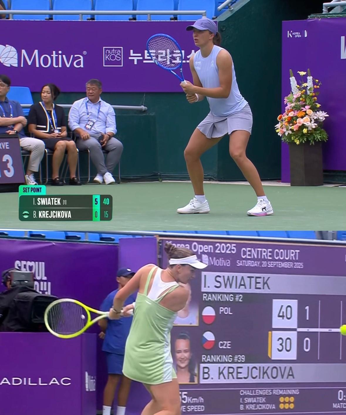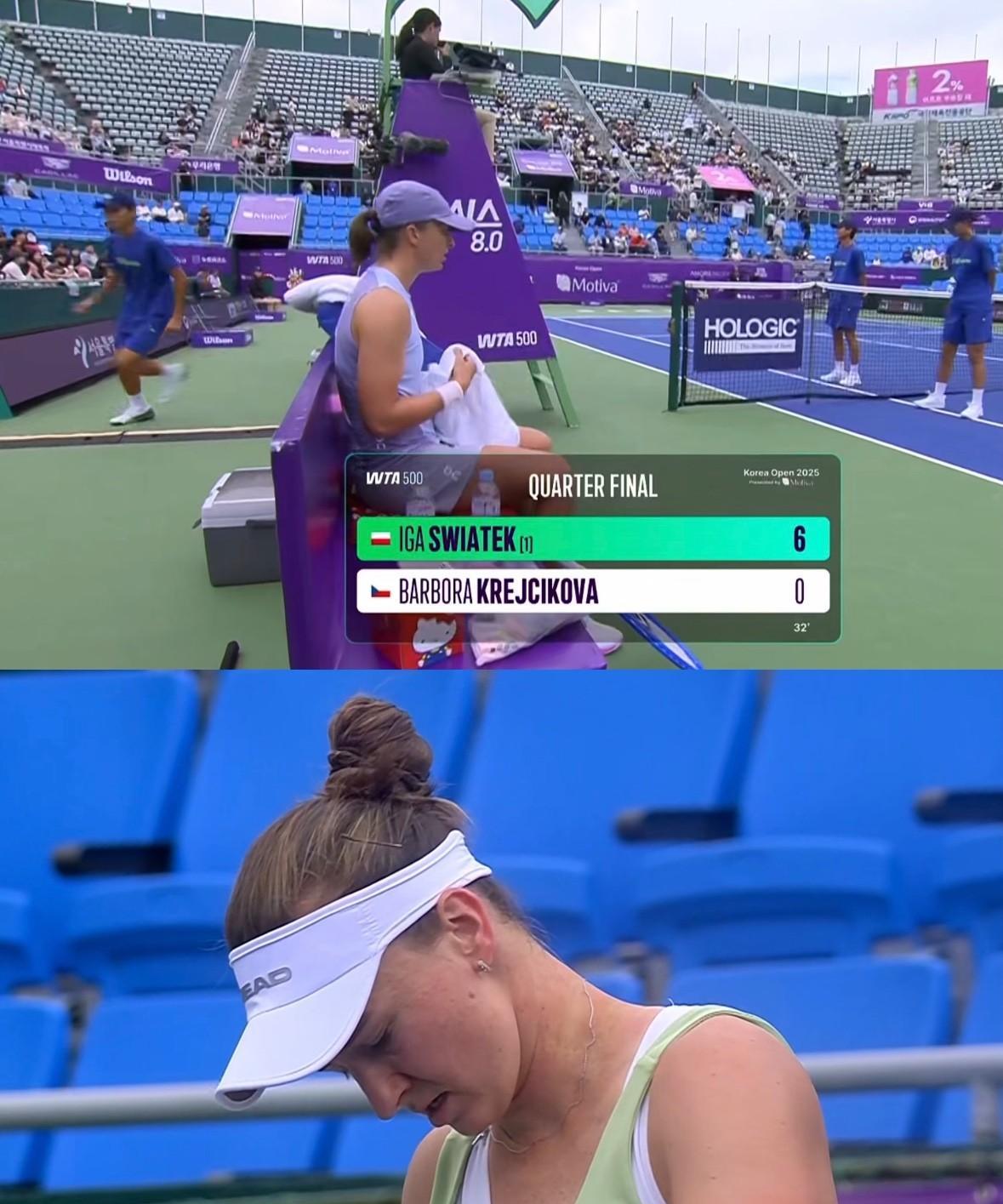 WTA500首尔站,好残酷!斯瓦泰克一上场便火力全开,面对拉奶毫不留情,首盘以6