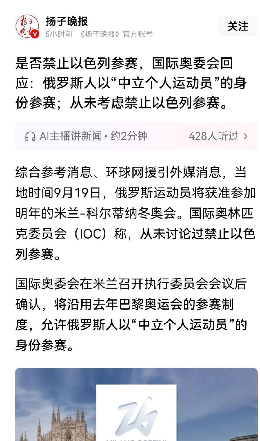 瞧见了没有?这就是西方世界的双标。 俄罗斯因为俄乌战争,受到一系列制裁,连国际奥委会都出来制裁,所以俄国运动员都不能代表国家参赛,只能以个人名义参赛。 这导致一大批优秀俄国运动员要么远走异国它乡,要么被迫退役。有的甚至因此陷入生活困难地步。 比如第一位获得三枚金牌的体操运动员阿纳斯塔西娅·布利兹纽克,因为俄罗斯被全面禁赛,阿纳斯塔西娅只好来到中国,成为中国国家艺术体操队的教练。 但当以色列对加沙人民进行肆无忌惮地攻击、屠杀,造成数十万无辜百姓伤亡时,国际奥委会却说“不,我们从来没有考虑对以色列进行禁赛……” 所以,这个世界哪有什么绝对公平,规则……永远只掌握在强者手中。