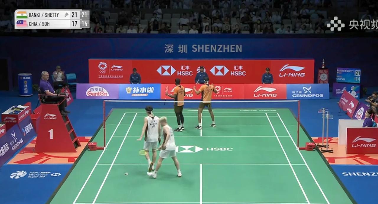 中国羽毛球公开赛男双第一场半决赛,印度双塔兰基雷迪/谢提组合将比赛牢牢控制在手上