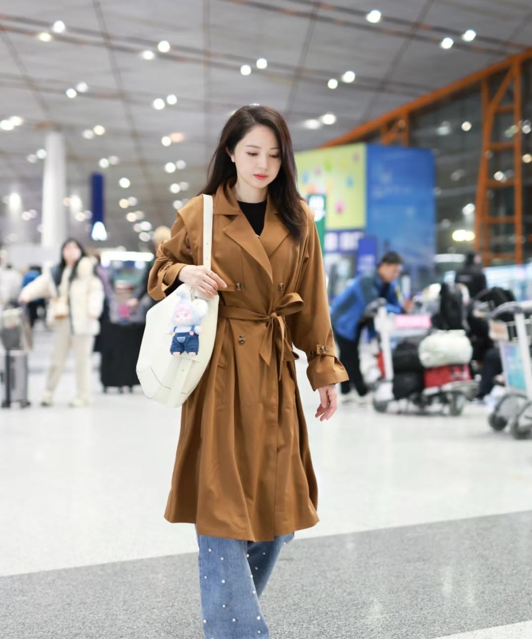 有网友在机场偶遇董璇,她这身风衣好好看啊!最近她可是话题人物,带着现任老公上综艺