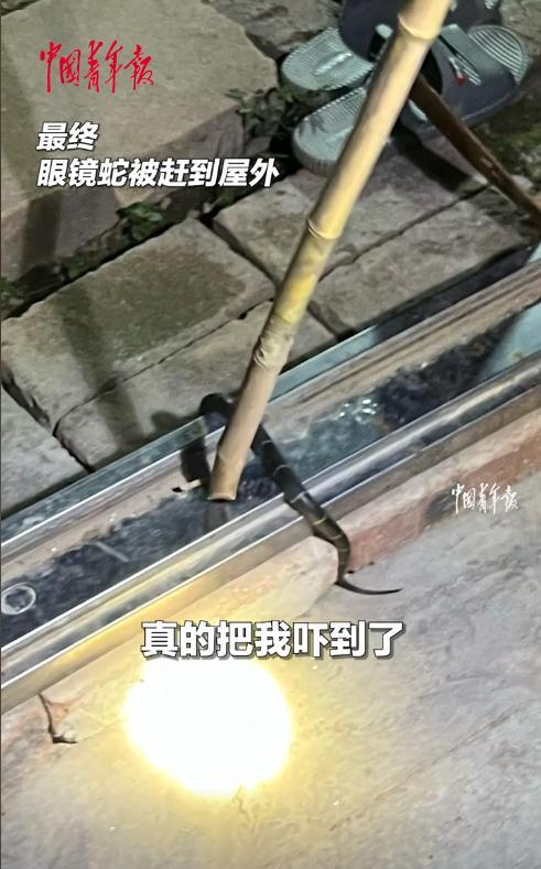 “万物都有灵!”湖南衡阳,一男子听到家里的猫在抓东西,就好奇的拿手电照了一下,结果发现是一条眼镜蛇!被3只猫堵在箱子后面动弹不得,时不时的还朝小猫发起攻击,男子立即拿来长竹竿,将蛇赶了出去。网友:毒蛇为什么要放生? 南方地区蛇类繁多,再加上现在正是蛇活跃的时节,田间、河边经常能见到蛇的身影,所以大家在外出时一定要小心。不过,有时蛇还会溜进居民家中,让人防不胜防! 据媒体9月20日的报道,这天晚上,肖先生正在休息,突然听到小猫在屋里来回窜,本以为它们是在玩耍,可灯光照过去,肖先生却看到了恐怖的一幕,一条剧毒的眼睛蛇蜷缩在箱子后面,时不时的发动攻击。 肖先生认出了这条蛇,前不久,他就在家周围见到过,当时他找来工具将蛇赶走了,没想到现在竟然溜进了家里,这要是晚上不注意被咬到了,估计自己的小命就要交代了。 肖先生立即找来长竹竿,将眼镜蛇赶了出去。 不得不说这三只小猫非常勇敢,发现危险后第一时间站了出来,帮主人将蛇控制起来。 眼镜蛇作为国家保护动物,是不允许私自捕捉的,如果在野外发现,尽量在确保自身安全的前提下撤离,如果出现在家里,应及时联系消防员,让他们前来处理。 信息来源:《养猫千日,用猫一时!男子家中进了眼镜蛇,三只猫咪将其堵到墙角。》中国青年报