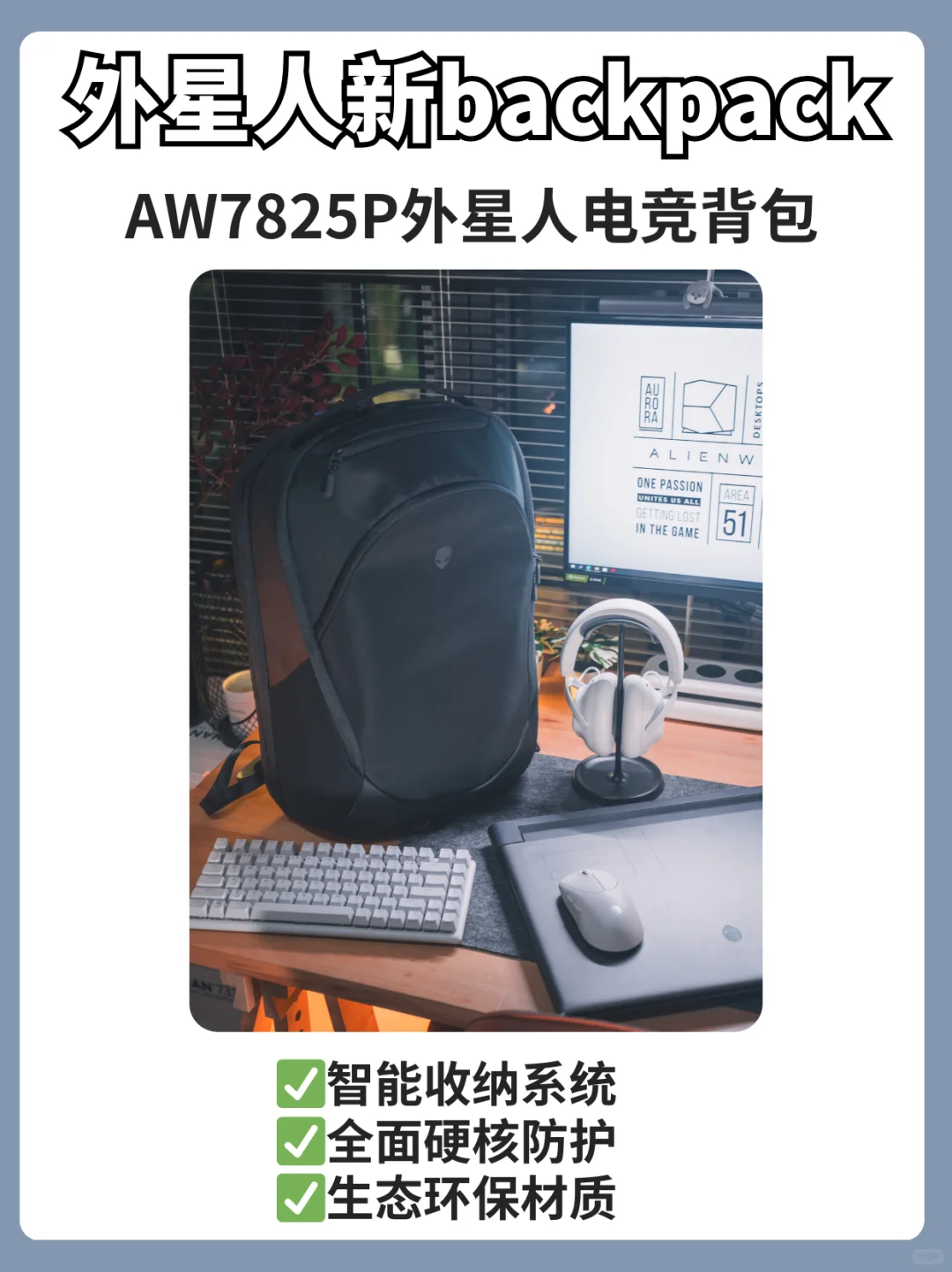 有耳机也要安排上电脑包👉AW7825P外星人电竞背包,