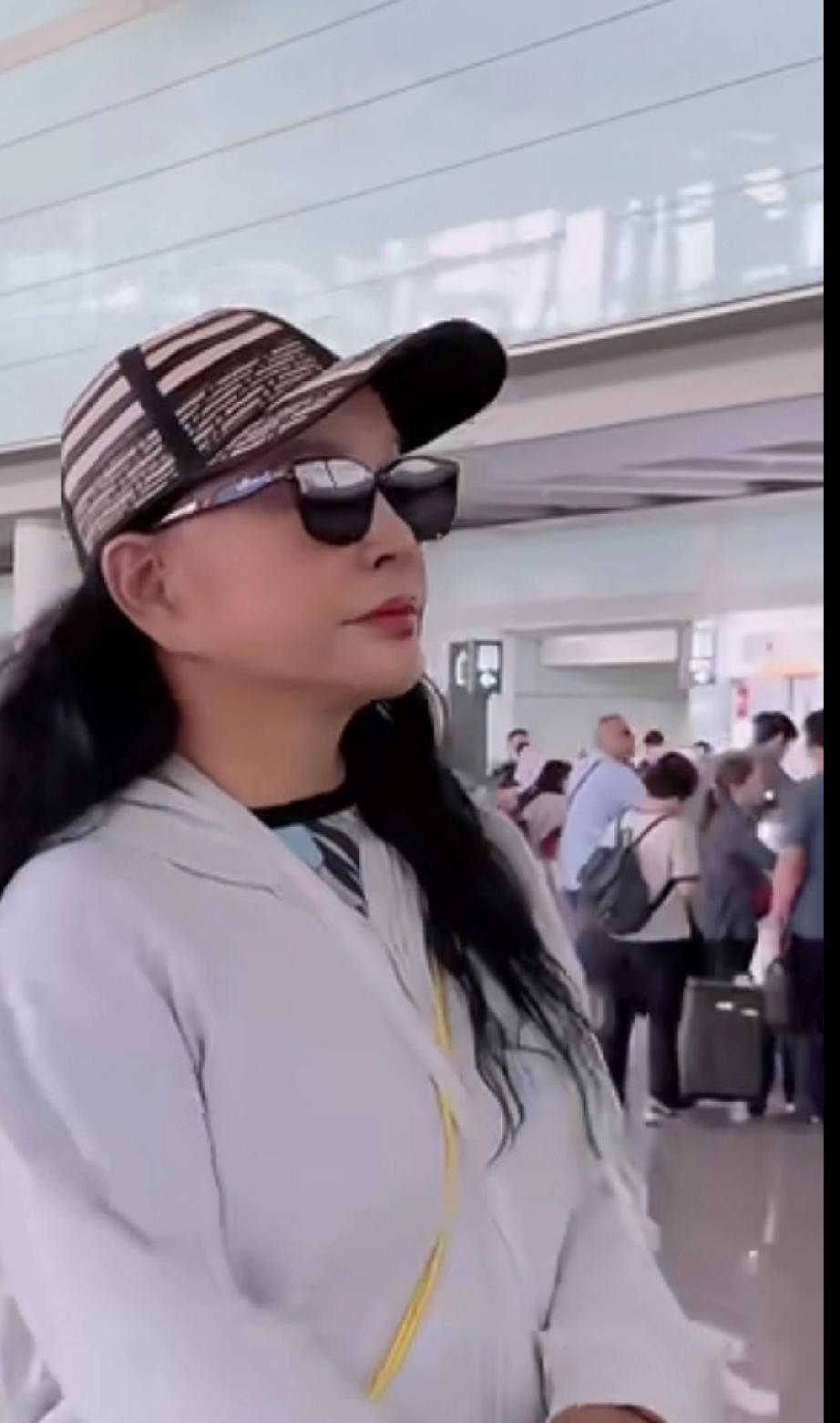 刘晓庆说她自己一脚踩空,掉下去了,因此左手臂受伤,今天一个人回京,有网友在机场看