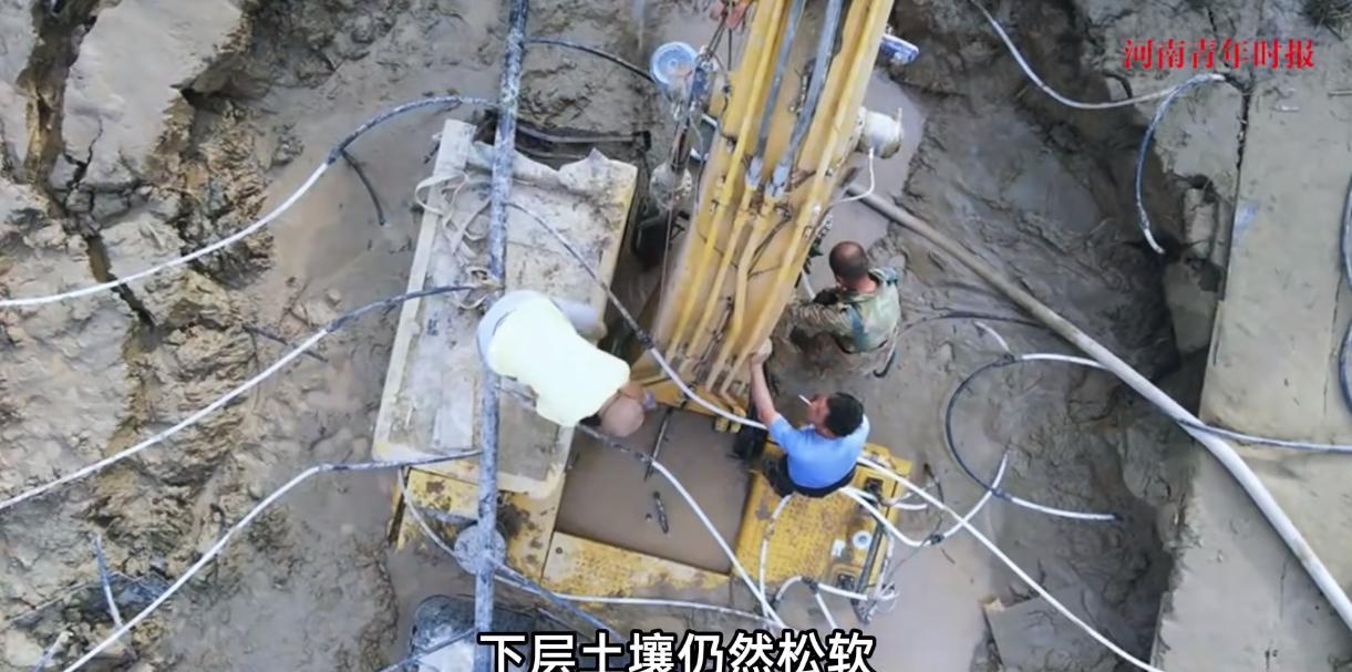 我有方案,①以30米直径插防5米深防蹋钢板②挖清机器四周的泥土③以木材搭建坡道④开上来。各位现在可以打预算报价了