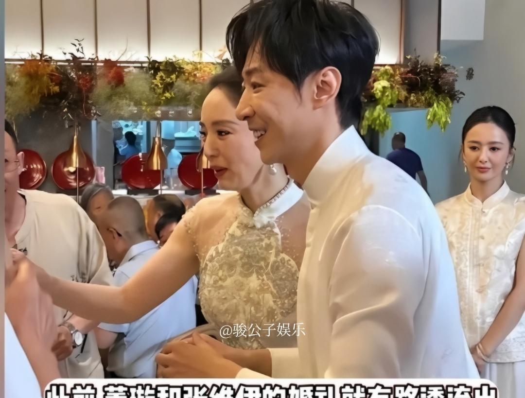 近日,有网友曝光了董璇与张维伊的婚礼现场视频。视频中,两人在亲友的见证下牵手跳舞