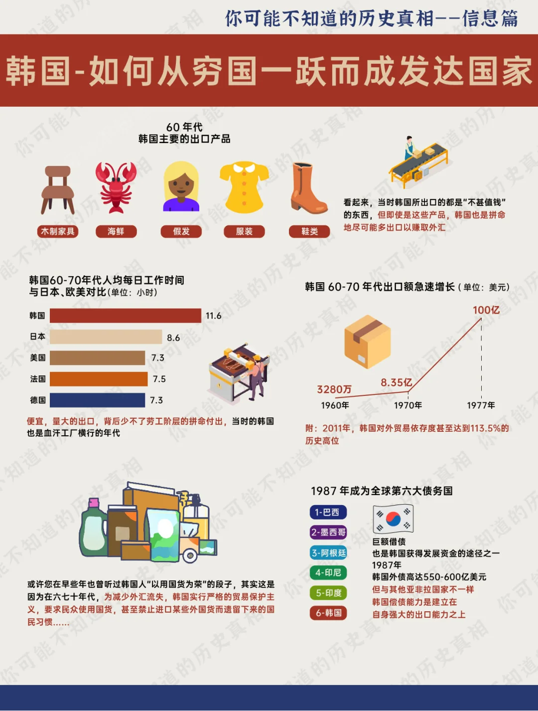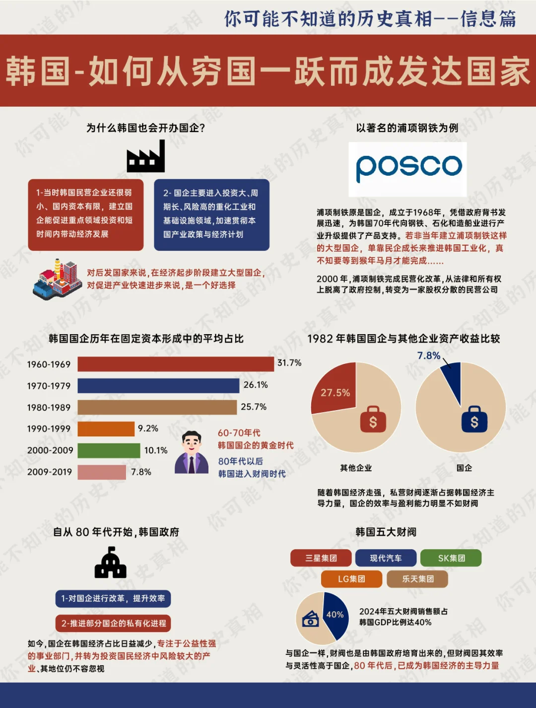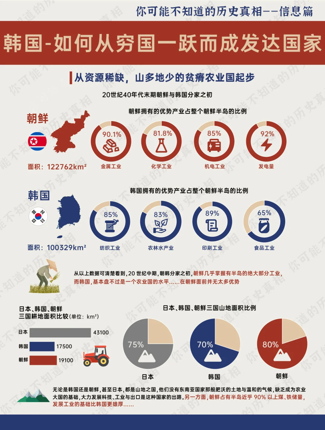 70多年前的朝鲜战争 也许当时来自各国的参战士兵们 并没有想到: 脚下这个战乱不断,贫穷落后的小国——韩国(南朝鲜) 在战后仅用了40多年,就成为全球高收入国家,并晋身为发达国家的一员 韩国 仅仅用了一代人 就从贫穷潦倒的不发达国家 一跃而成亚洲仅有的四个发达国家之一 可谓是一段传奇 历史 世界历史 韩国 朝鲜 朝鲜半岛 朴正熙 汉江奇迹 发达国家 财阀 日本 若无朴正熙,韩国能有今日繁荣? [PK]