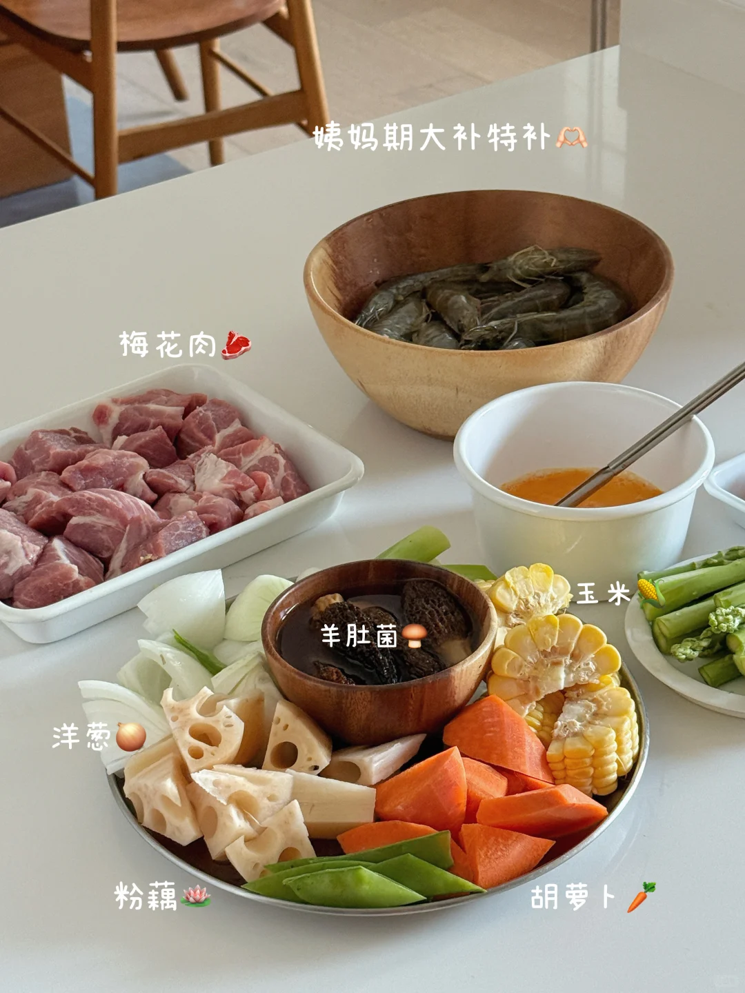 · 今日菜单📝 羊肚菌浓汤🍄‍🟫 白灼虾🦐 白灼芦笋🍃 肉酱滑蛋饭🍳 黄油桃🍑 红糖小圆子🧆 姜枣茶🫚 每个月的那几天都像一场特殊的小战役💪🏻 今天做了姨妈期小套餐给自己补补身子 梅花肉浓汤 里面有很多蔬菜 好喝~ 这个汤我一年也就做个125次吧🧏🏻‍♀️ 今天还放了一些羊肚菌 姨妈期养养胃 我朋友常说肉宝你每天电量好足啊! 我说:那是 我姨妈可以到55岁哈哈哈 经期饮食我也有自己得一套心得~ 多吃含铁的食物 比如:红肉、动物内脏🥩 含维C的食物:温性的一些水果和彩椒🫑 高蛋白的食物:三文鱼、虾和牛奶🥛 含镁的食物:坚果、牛油果🥑 还需要优质脂肪:黑芝麻和橄榄油等~ 好好吃饭 好好睡觉 多喝热水!🫶🏻 姨妈期好好爱自己对我们女生来说太重要了 除了食物上的能量补给 贴身用的卫生巾 也要好好挑选内补外护缺一不可! 之前总以为是自己护理不到位 其实都是卫生巾没选对😮‍💨 闷痒异味啥的都是经血湿湿的闷久了 滋生细菌刺激皮肤导致的 这款新出的护舒宝卫生巾PRO健康专研 就是专门针对我们女生常有的经期闷痒的不适问题研发 我已经帮你们用过了 真的好好用啊! 它是0化学添加 独有的单向导湿表层 好比一个物理隔菌盾 隔菌率高达99.9%! 经血吸进去就沉底下出不来了 接触不到皮肤细菌自然不会滋生 物理隔菌的黑科技是真的绝绝子! 从根源解决了闷!湿!痒! 就算去瑜伽、骑车、蹦迪~ 也是不闷不黏腻 清爽自在🫧 而且它是照着婴儿标准做的卫生巾 非常的亲肤 更安全更放心~ 不愧是央视品质信赖的好品牌👍🏻 让每个月的那几天都能轻松度过 活力满满🧘🏻‍♀️ 女生们食补都吃起来 护舒宝PRO用起来! 好好吃饭 好好呵护自己~