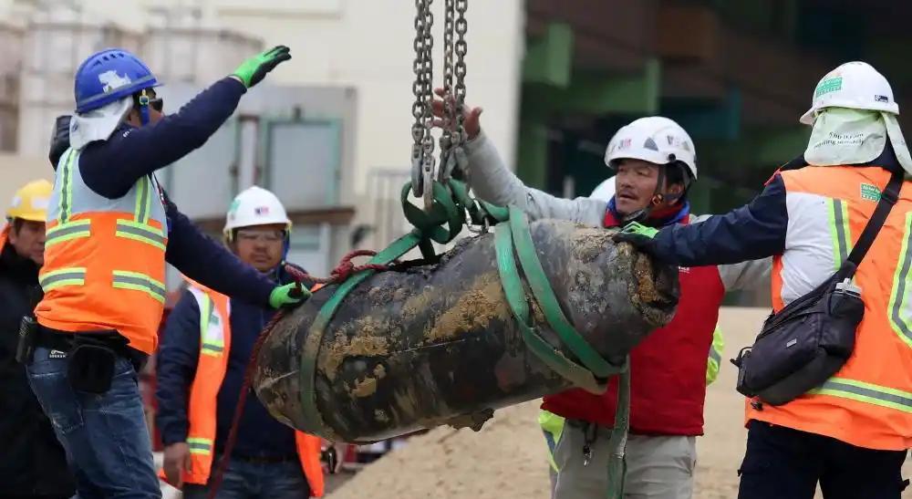 香港炸弹闹市拆除,现实与电影大不同 最近,香港鲗鱼涌滨海街工地惊现一枚二战时期美