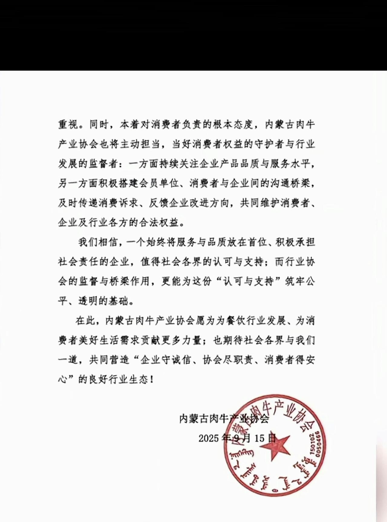 其实,西贝真没有必要搞这些虚头巴脑的东西来为自己“洗白”: 图一、二:某肉牛产业协会关于助力西贝的发声公告; 图三:一些餐饮企业围着“西贝”在中间进行“保护”的广告球; 图四、五、六:某些协会的会长聚在一起到西贝餐厅点了1000多元的西贝菜,个个说吃得好的感受。 西贝这样子搞法,只会引发外界的反感,而不是好感!