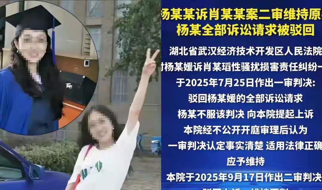 实在是想不通啊,怎么会这样么? 武大“性骚扰”事件二审结果出来了,杨某媛败诉,肖同学处分也撤销了。可这结果让人心里膈应。当初明明就是杨某媛诬告,肖同学只是正常挠痒,却被要求写道歉信,之后还“东躲西躲”,生活被搞得一团糟。 而杨某媛呢,像没事人一样,整天网上分享日常,发文说看淡一切。武大调查说她论文只是百余处“不规范”,还维持授予其硕士学位的决议。反倒是她导师被约谈,暂停招生资格两年。这怎么看都不公平,犯错的全身而退去读博,其他人却成了“背锅侠”。这背后到底是啥情况,真让人摸不着头脑。