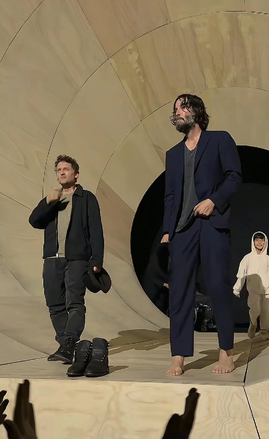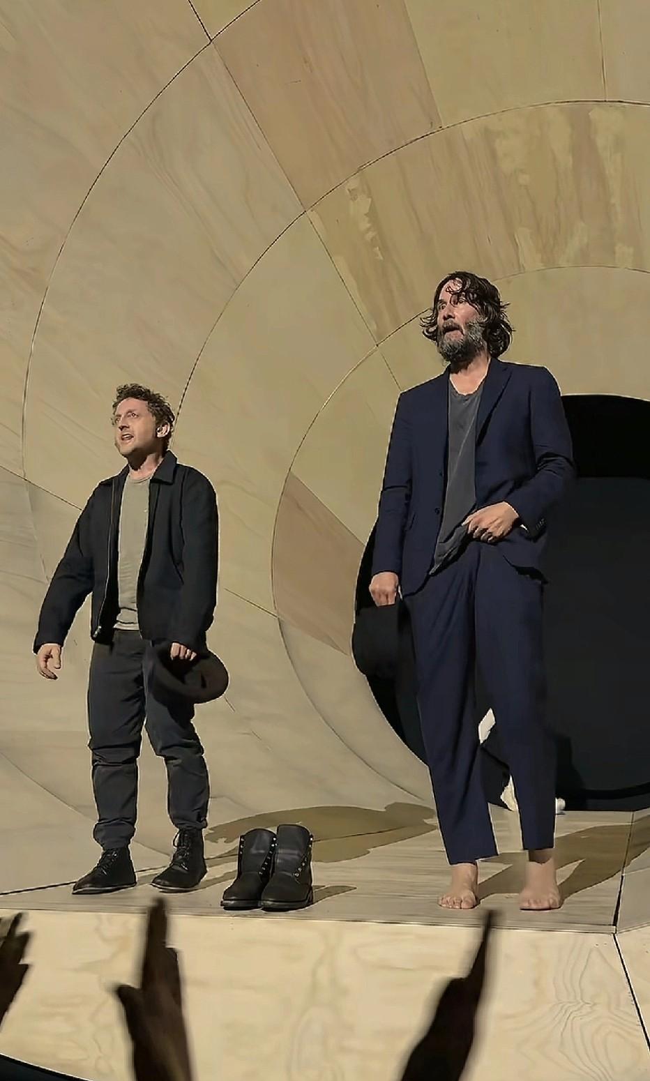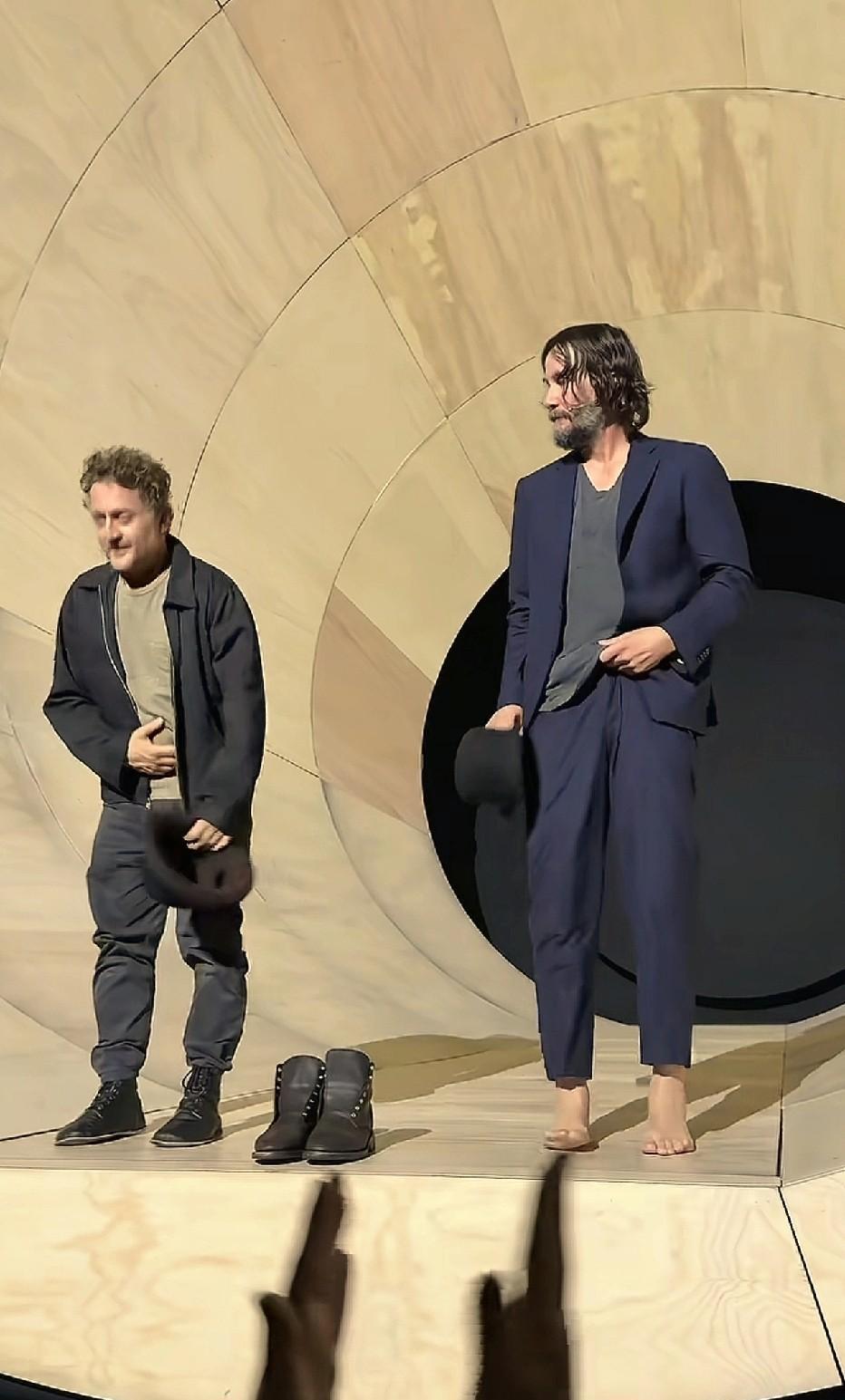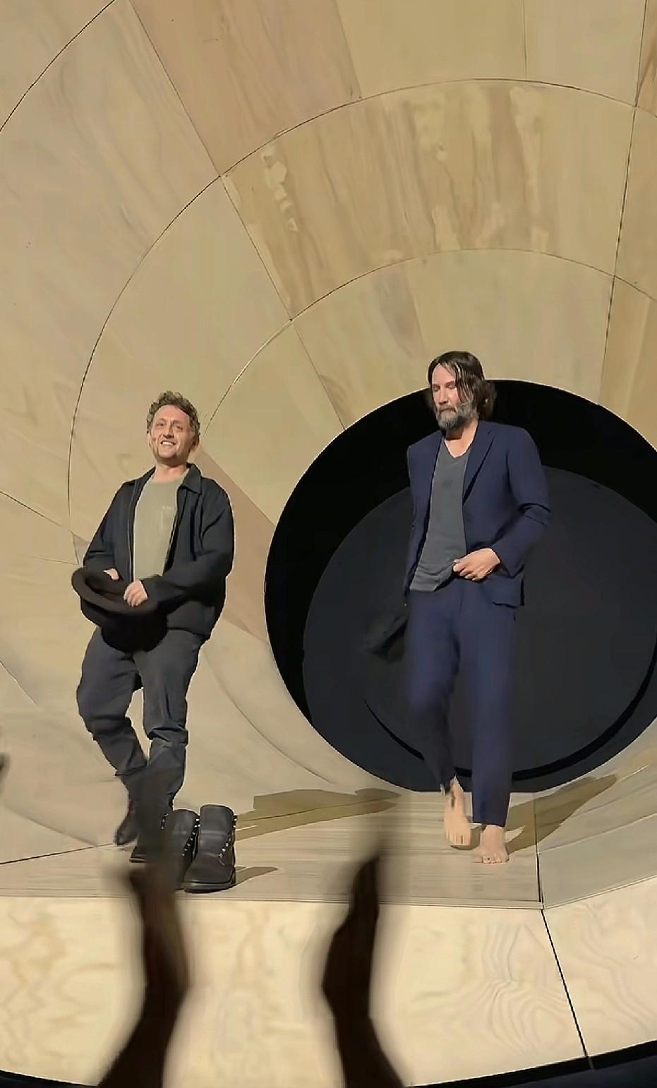 好莱坞巨星基努·里维斯胡子拉碴,精神状态看着不太对,不过这也挺符合他的风格。他拒