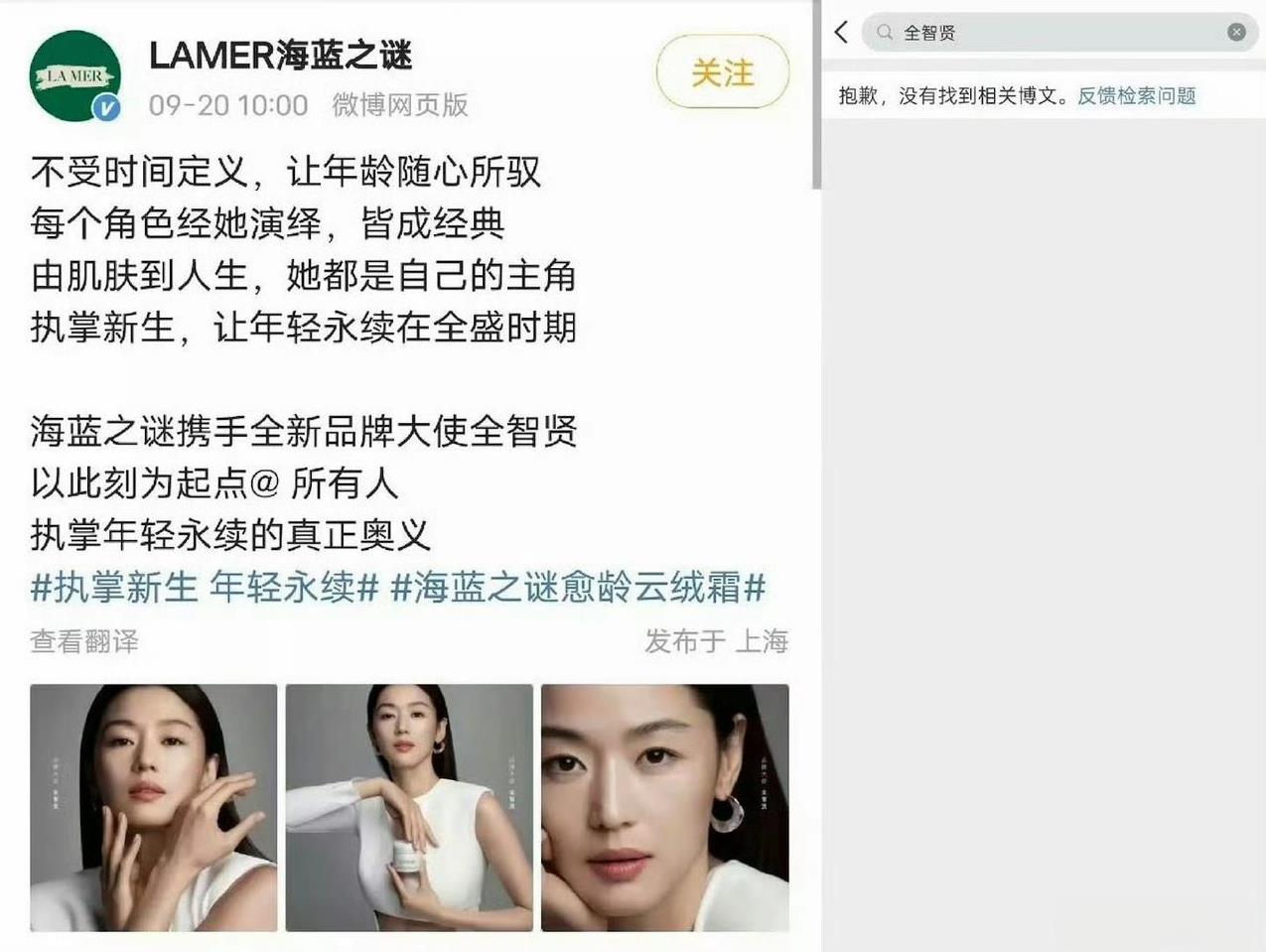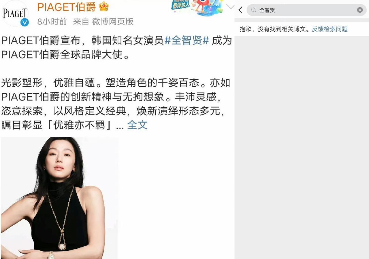 LV删除全智贤相关内容; 海蓝之谜删除全智贤相关内容; 伯爵删除全智贤相关内容。