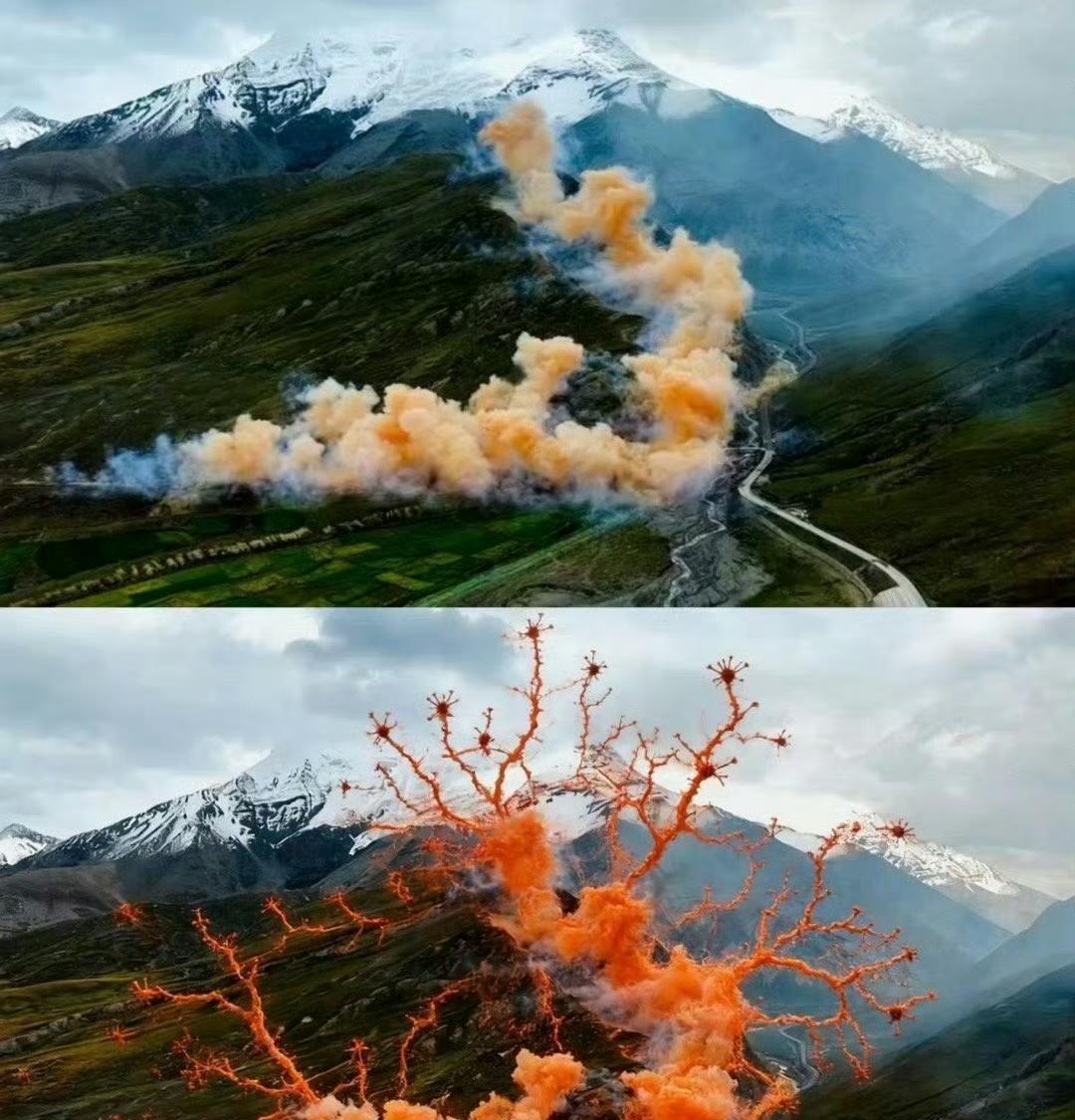 有些怪事层出不穷,公然视法律为儿戏,到底是为啥? 2025年9月19日,始祖鸟联合蔡国强在西藏喜马拉雅山脉江孜县海拔5500米处放烟花《升龙》,炸出了大争议。 组织方用火药爆破在山脊点燃三幕烟花,形成“升龙”景观,还有145根扇形彩烟组成3000米长的彩虹。这活动规模大、到场人多。可这里是生态脆弱区,有雪豹、猎隼等保护动物和多种珍稀植物。始祖鸟还主打“敬畏自然”,这操作简直打脸。 不少网友质疑烟花对高原土壤植被、野生动物有干扰,对大气和水体有潜在污染。当然这肯定是一起特别重大的而且非常严重的破坏环境的违法行为,尤其在这么圣洁的地方,真是让全国人民非常气愤! 据称,日喀则已成立调查组赶赴现场,就看后续怎么依法依规处理了。 地方监管不力,看来问题也很严重!