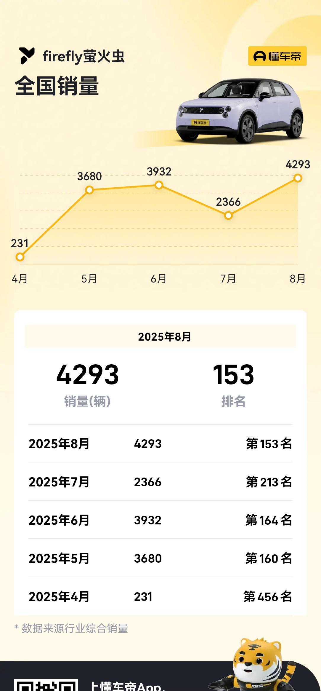 一年前的蔚来NIO DAY,精品小车,“自在发光”的萤火虫发布,一时间,“六眼飞鱼”,不,“流言蜚语”四起——这么丑的车,还十几万,蔚来又凉一款。 李斌给出的预期和期望是月交付3000-5000辆,也被“六眼飞鱼”,不,流言蜚语所缠绕。 今年的NIO DAY,萤火虫已经完成了4个完整月的交付,从交付量看,除了7月份因产线改造(类似)垮了一点只交付了2366辆,其余三个月都在3000辆以上,上个月突破了4000辆。从9月前两周的周榜看,9月萤火虫的交付量大概率突破5000辆,这已经是非常惊人的交付量了——一款小小的买菜车,单价十几万,一个月卖五千辆,疯了? MINI和SMART,都做不到。 当然,很多人觉得萤火虫便宜,BAAS下来才七八万块钱,压力不大买一辆玩玩——确实,这有点不讲武德了,还可以用租赁电池的方式来销售。 其实,萤火虫热销的根源在于,太有辨识度的涉及,从丑到丑萌,就经历一个“看惯”就可以了,而且还有玩出花的潜力——那就好看了。 安全和智能在线,调性在线,买起来压力不大,有里有面,萤火虫,成了。 接下来,就看萤火虫在喜欢小车的欧洲,能有什么表现了。
