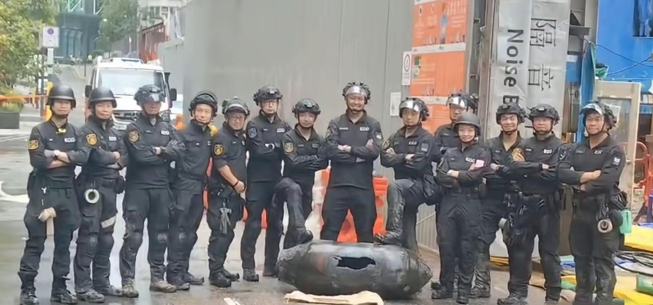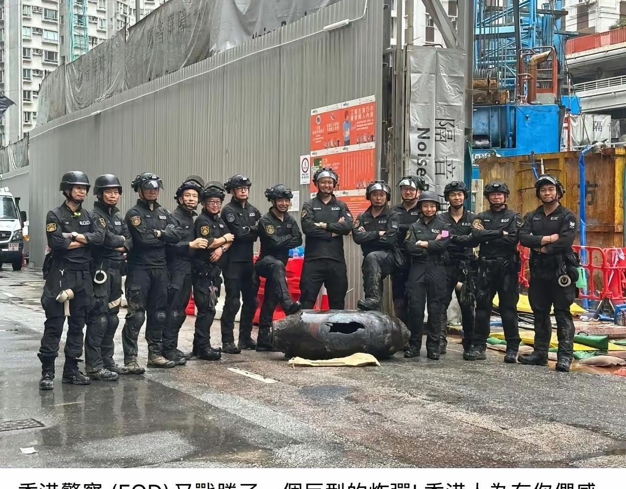 这次香港的纪律部队,又立大功一次了! 在香港的居民楼区域,发现了一枚二战时期投掷的航弹。这航弹重约1000磅(约等于454公斤),可以说威力炸伤范围是非常广的。 香港警方也是不敢怠慢,派出了港警最精锐的拆弹部队去处理,可以说是这个难度难不倒他们的。 看到他们都这么自信地在航弹面前拍照留念了,都证明了是处理非常成功,这就是有力维护香港安全的又一次最好证明。 这样的生活电影题材有了,看来拆弹专家系列这部电影,未来还会有新的剧情上映的。[尬笑]