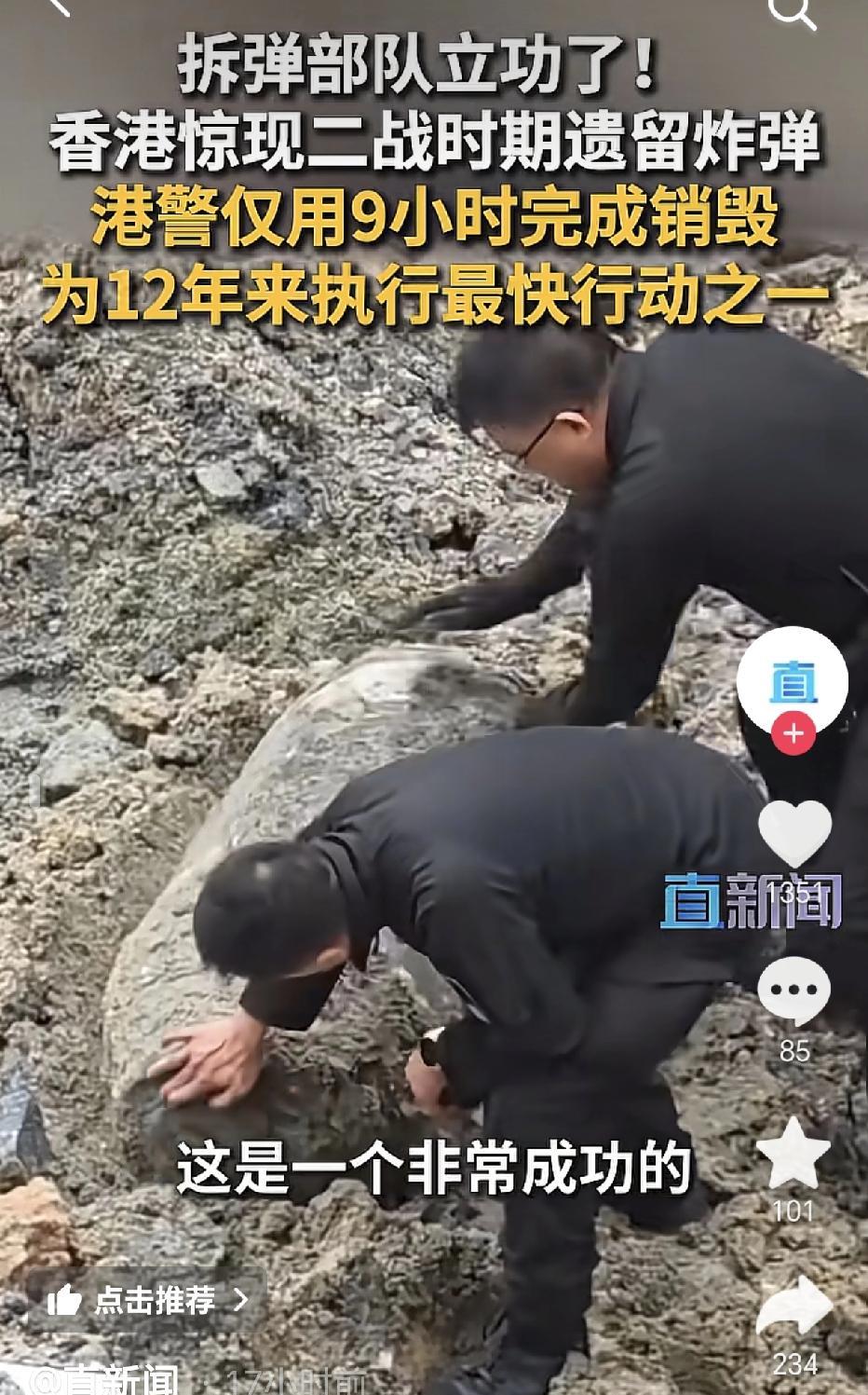 这次香港的纪律部队,又立大功一次了! 在香港的居民楼区域,发现了一枚二战时期投掷
