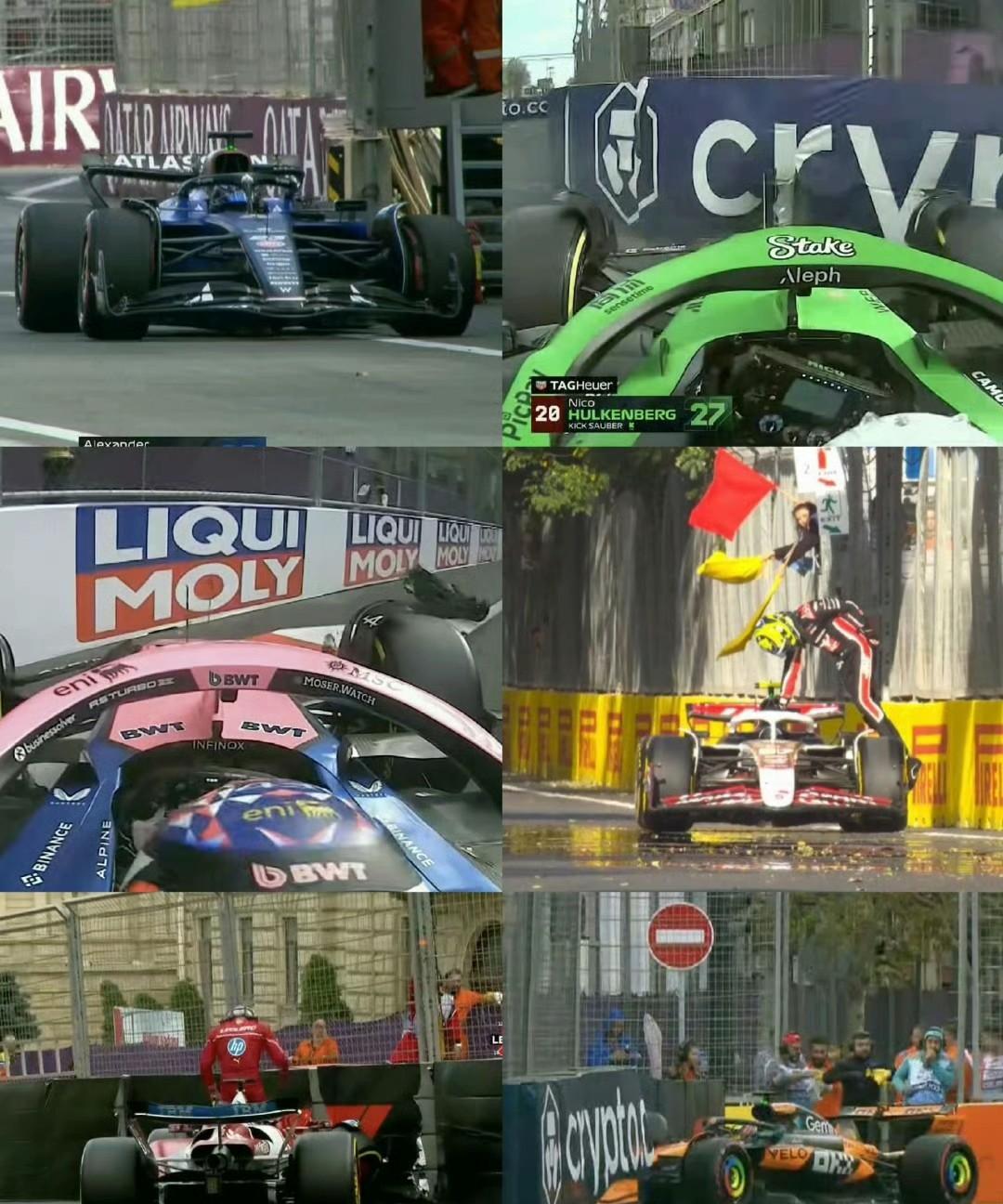 阿塞拜疆大奖赛排位赛6次红旗,超越2022年伊莫拉和2024年圣保罗的5次,创造了F1历史记录。 在一场充满戏剧性、非凡的排位赛中,持续了近两个小时,六次撞车,六次红旗,数不清的黄旗和轮胎与护墙的擦碰。 现在让我们回顾一下,看看这场混乱是如何开始的: 第一个触发红旗的威廉姆斯车手阿尔本,他在Q1的1号弯撞墙。 索伯车手霍肯伯格是第2个,他在4号弯撞掉了他的前翼。 最悲催的还属Alpine,加斯利失误的同时,科拉平托在黄旗下成为第3个上墙的车手,也让Q1提前结束。 贝尔曼在2号弯打滑上墙触发了第四面红旗,他的哈斯赛车受损而无法继续行驶。 法拉利在经历强劲的练习赛后,排位赛十分糟糕,汉密尔顿止步Q2,勒克莱尔则在Q3的15号弯一头扎进护墙,引发了第5面红旗。 接下来就是迈凯伦的冠军领头羊皮亚斯特里,他在3号弯戏剧性的撞车,导致排位赛破纪录的第六个红旗出现。 但戏剧性的排位赛,以及逐渐恶劣的赛道条件并没有阻止维斯塔潘跑出本周末至今为最快的单圈-1:41.117。